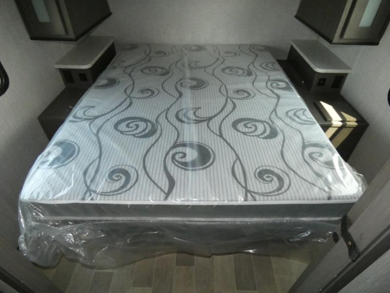 With any Cruiser MPG travel trailer, you will appreciate the five-sided aluminum-constructed body that is towable by your half-ton truck. The high-gloss fiberglass exterior and front cap will turn heads at any campsite. Inside, you can enjoy the residential-style furniture with top-stitching, the barrel roof, the Shaw carpet with R2X stain-resistance treatment, and the king-size bed that makes you feel like you haven't left any comforts back home. It's time to start making more memories per gallon with your favorite MPG travel trailer today!