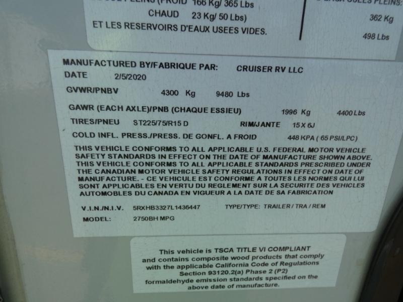 Used 2020 Cruiser MPG 2750BH Travel Trailer