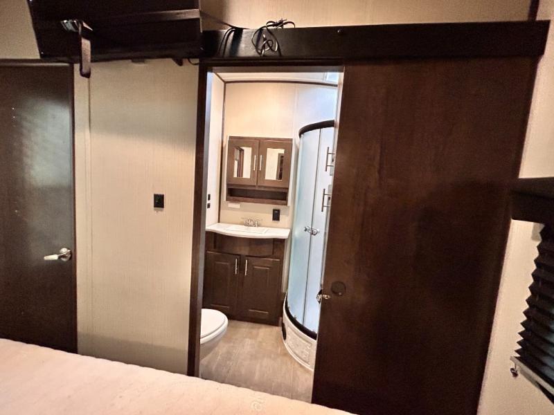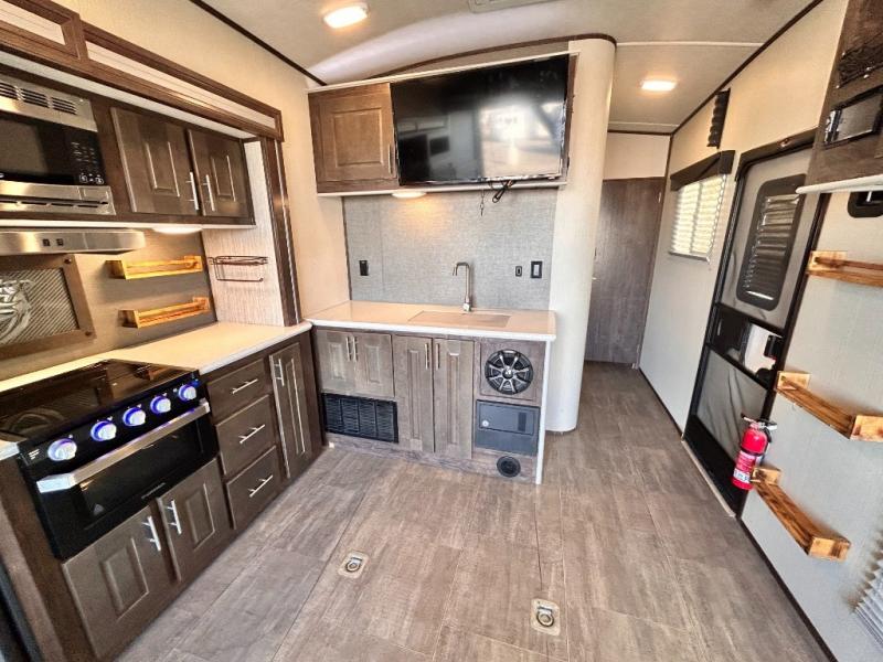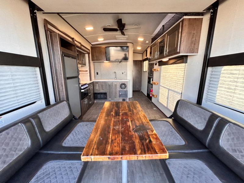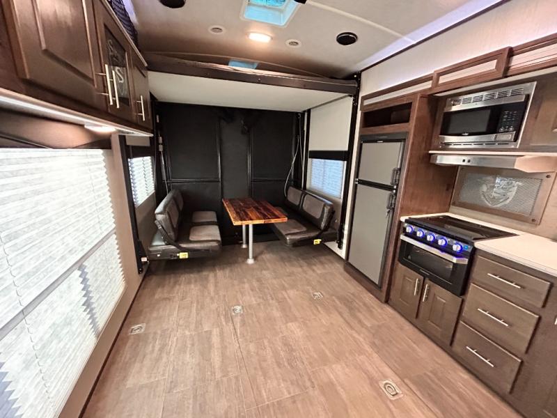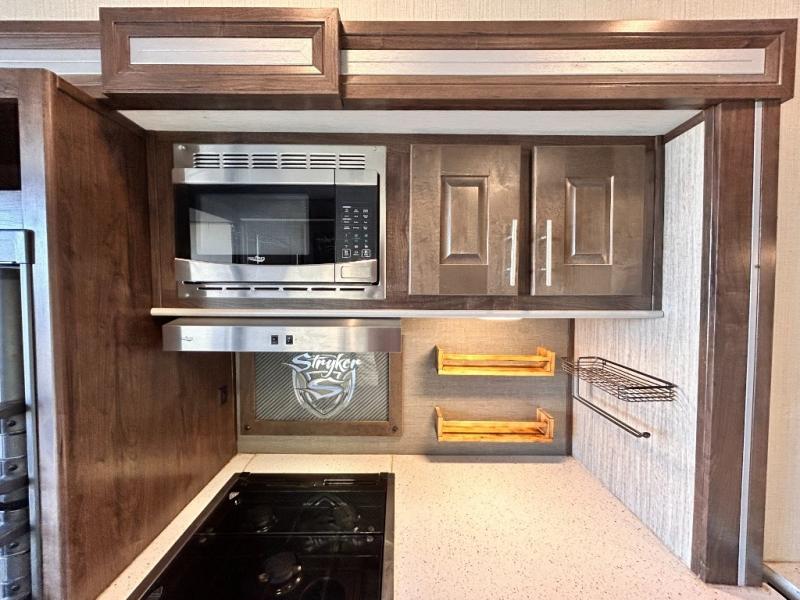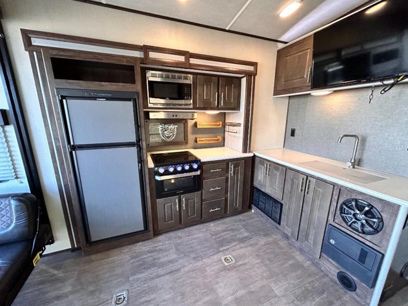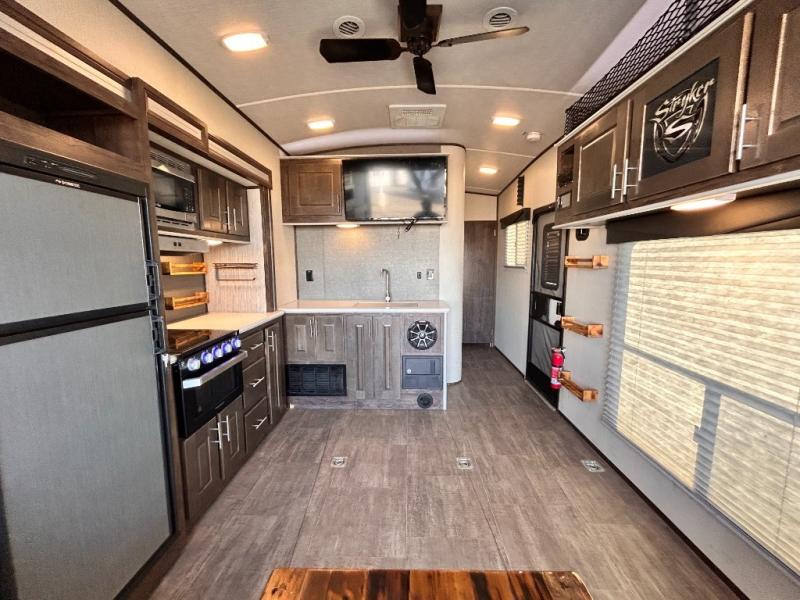 The Stryker toy hauler by Cruiser RV is all about family fun! With its functionality, design, and innovation, the Stryker was created with you in mind, and because the Stryker has a wide-body foundation, you will be able to bring along your biggest off-road toys. With deluxe additions like the residential furniture and designer accent walls, the interior portion of the Stryker is just as breathtaking as the high-gloss premium fiberglass exterior. The 30 gallon fuel station allows you to keep your toys ready to go when you are and each model is capable of fitting a four seat side-by-side so you can invite your buddies along for the ride!