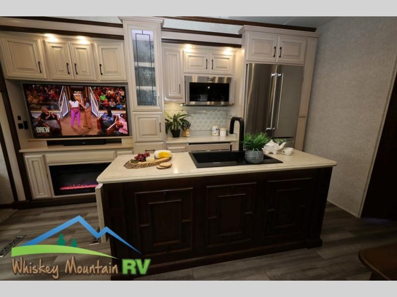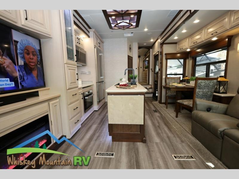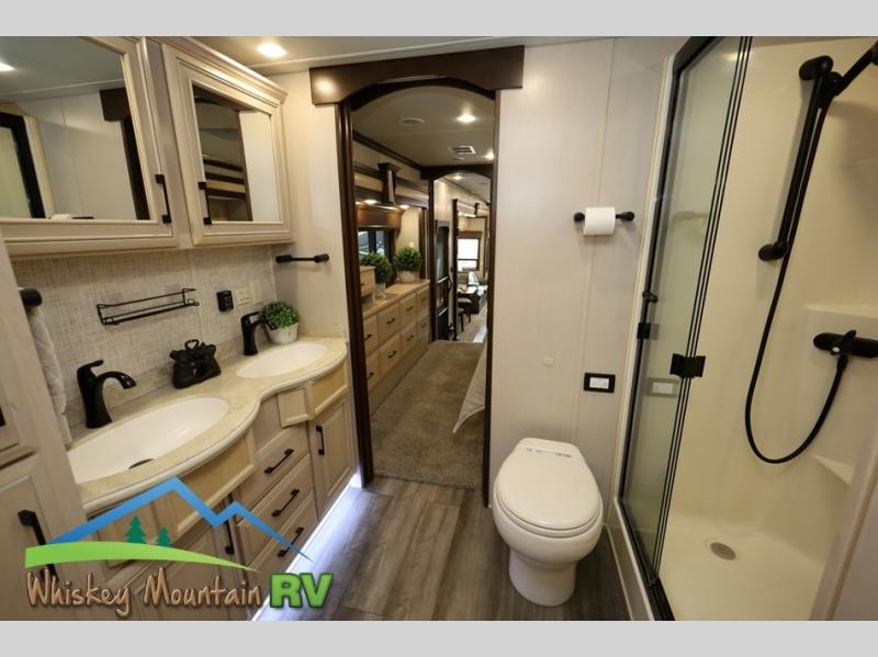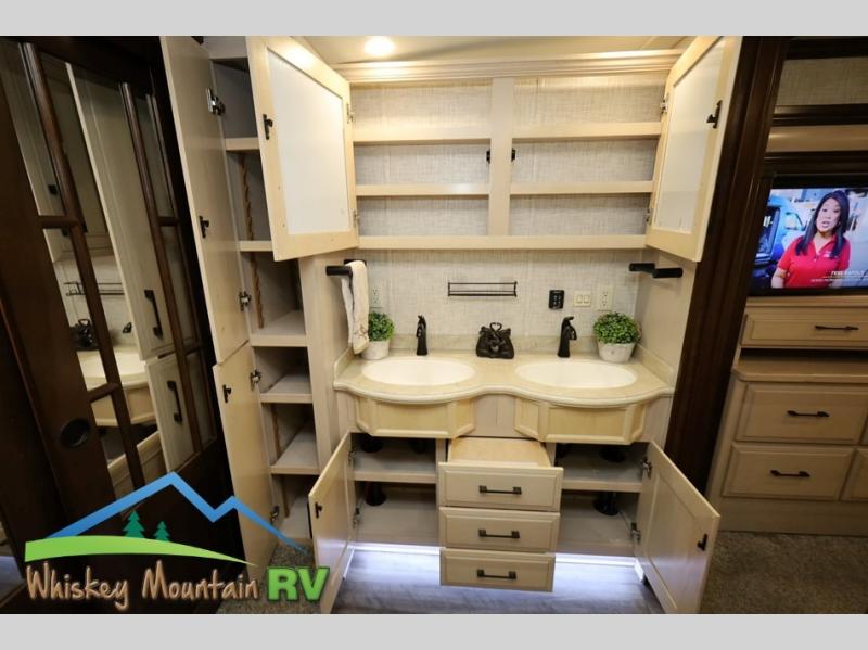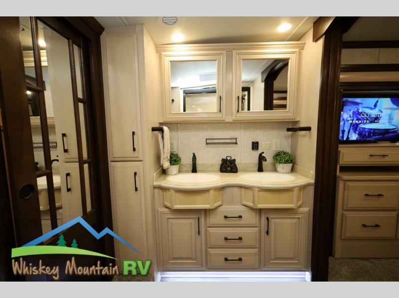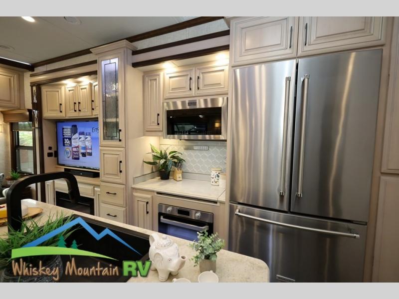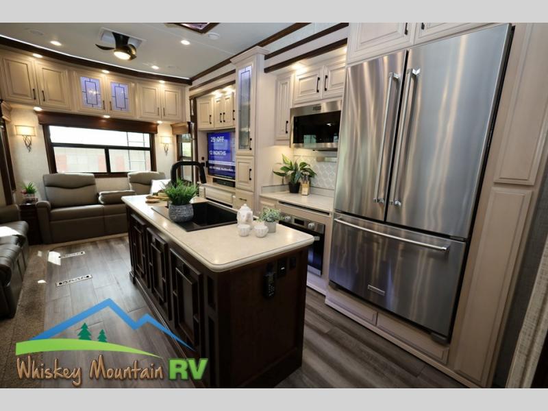THIS ONE OWNER, 2020 DRV MOBILE SUITES 39 DBRS4 IS ONE OF DRV'S MOST POPULAR BATH AND A HALF FLOOR PLANS ESPECIALLY WITH THE LATTE INTERIOR. IT FEATURES A MAIN FLOOR HALF BATH / LAUNDRY ROOM WITH W/D, HUGE KITCHEN WITH CENTER ISLAND, LARGE PANTRY AND A KING BED MASTER SUITE WITH A FULL BATHROOM ENSUITE.