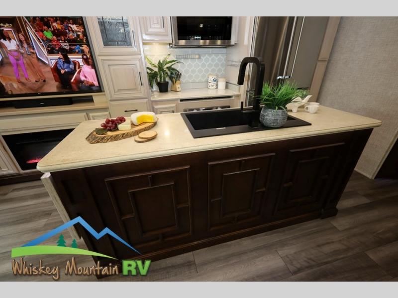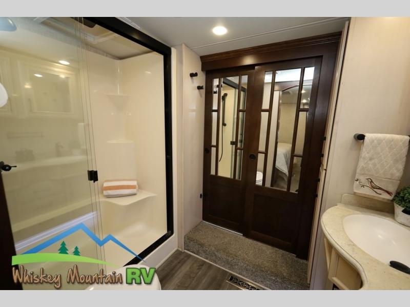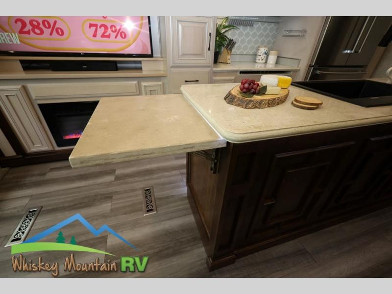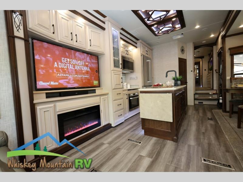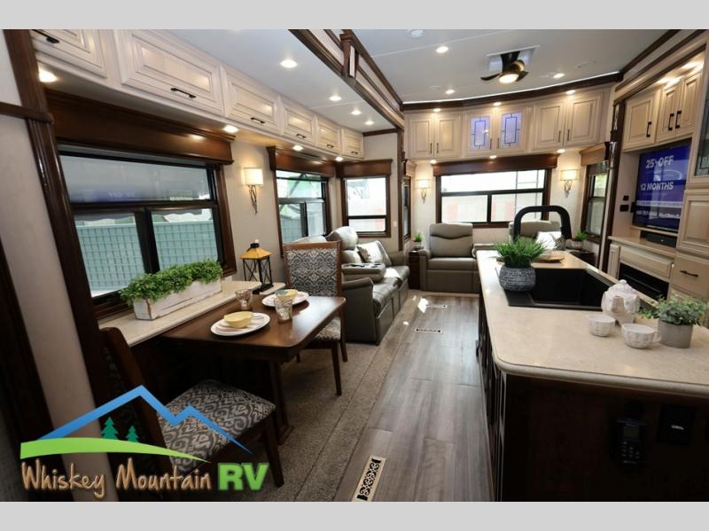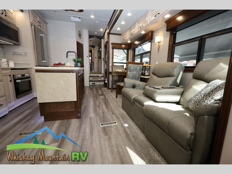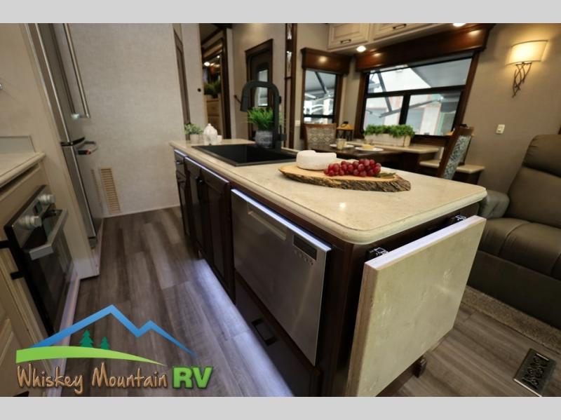 THIS ONE OWNER, 2020 DRV MOBILE SUITES 39 DBRS4 IS ONE OF DRV'S MOST POPULAR BATH AND A HALF FLOOR PLANS ESPECIALLY WITH THE LATTE INTERIOR. IT FEATURES A MAIN FLOOR HALF BATH / LAUNDRY ROOM WITH W/D, HUGE KITCHEN WITH CENTER ISLAND, LARGE PANTRY AND A KING BED MASTER SUITE WITH A FULL BATHROOM ENSUITE.