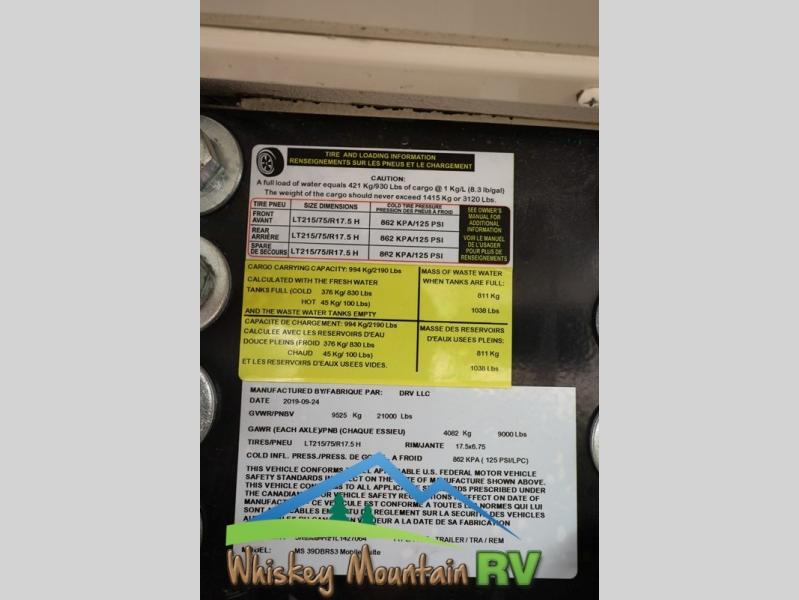 IT WAS BUILT ON SEPT 24TH, 2019 AND ORIGINALLY SOLD IN JUNCTION, OR. WE PURCHASED IT FROM AN OK DEALER WHERE IT WAS BEING TRADED IN. THE TIRES ARE BRAND NEW COOPERS DATE CODED 34/2024. THE CUSTOM WHEELS ARE ACTUALLY FROM THE 2025 DRV'S. A COPY OF THE MSRP SHEET FOR JUST UNDER $170,000 IS INCLUDE IN THE PICTURE SECTION. THE PREVIOUS ORIGINAL OWNER ADDED MANY SIGNIFICANT OPTIONS - SATELLITE, FLEXARMOR ROOF, STARLINK, GEN Y HITCH, SLIDE TOPPER AWNINGS, STEP ASSIST, WASHER/DRYER, UPGRADED APPLIANCES, LAMBRIGHT FURNITURE, CUSTOM SINK, CEILING FAN AND NEW TIRES WITH CUSTOM WHEELS. WE FOUND IT EXTEMELY CLEAN AND WELL MAINTAINED.