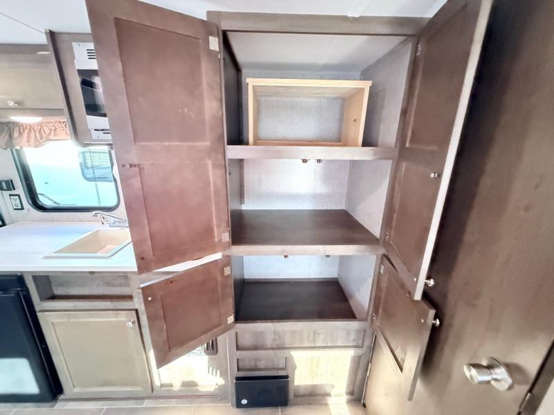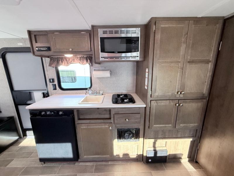 This Coleman Lantern LT travel trailer has just what you need to be comfortable as you explore nature. You will love the generous interior space thanks to the large slide out with two windows that are perfect for viewing your surroundings. When you are finished trail hiking, swimming, or just being outside, you know a shower and comfy queen bed are waiting for you back at camp. A large pantry allows you to take along plenty of snacks and canned goods, plus the two-burner cooktop and microwave allow you to make warm meals. You will find storage throughout the inside, plus exterior pass-through storage compartment for your larger outdoor gear.