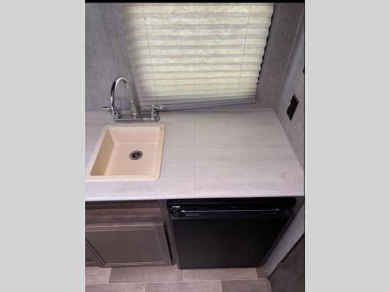 If you enjoy the great outdoors and like to stay until the next morning to do it all over again, take a look inside this Coleman Lantern LT travel trailer. You can make dinner on the two-burner cooktop, store leftovers in the refrigerator, get cleaned up in the rear full bathroom, and sleep on your own walk-around residential queen bed. You will also find ample storage space, and as you step inside, you will find more features to love on your next trip.