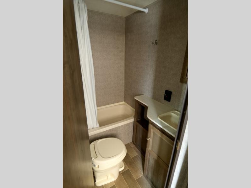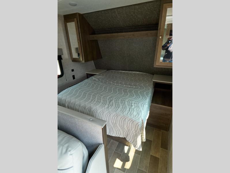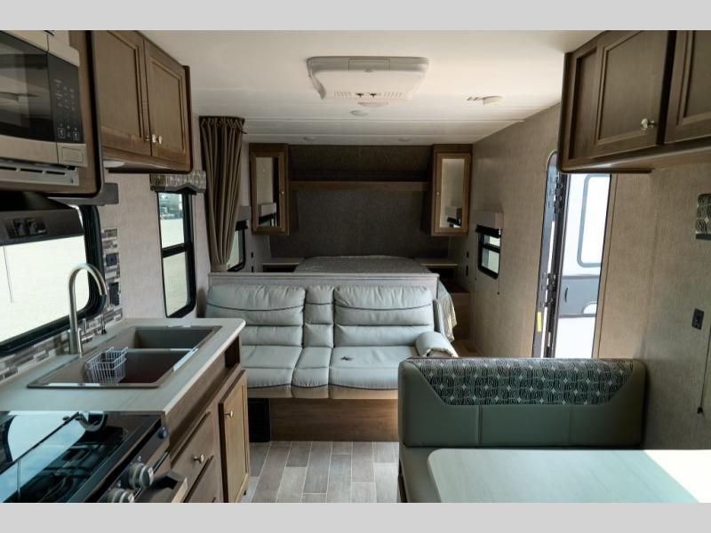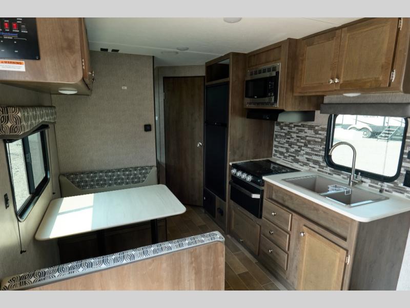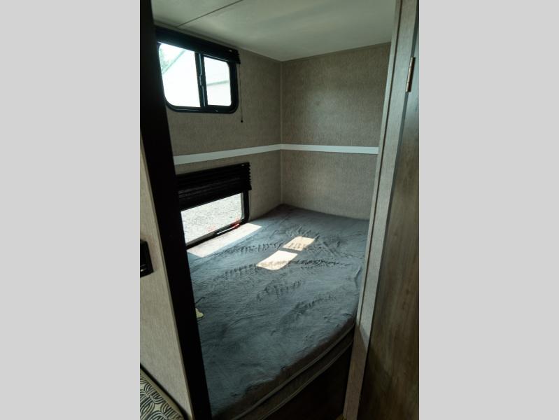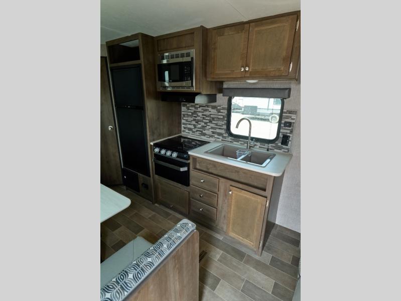Don't let memorable and adventurous getaways pass you by! Grab this Coleman Lantern LT Series travel trailer and set out on your next great expedition. The full rear bathroom with its skylight will come in handy for your morning routines, and the full kitchen will give you an opportunity to make warm meals for the group. You will be amazed by the amount of sleeping choices this trailer has, enough to sleep eight to nine people comfortably. The bunks will be the kids favorite, and the walk-around residential queen bed will be a nice oasis at night, plus the furniture doubles as sleeping space.