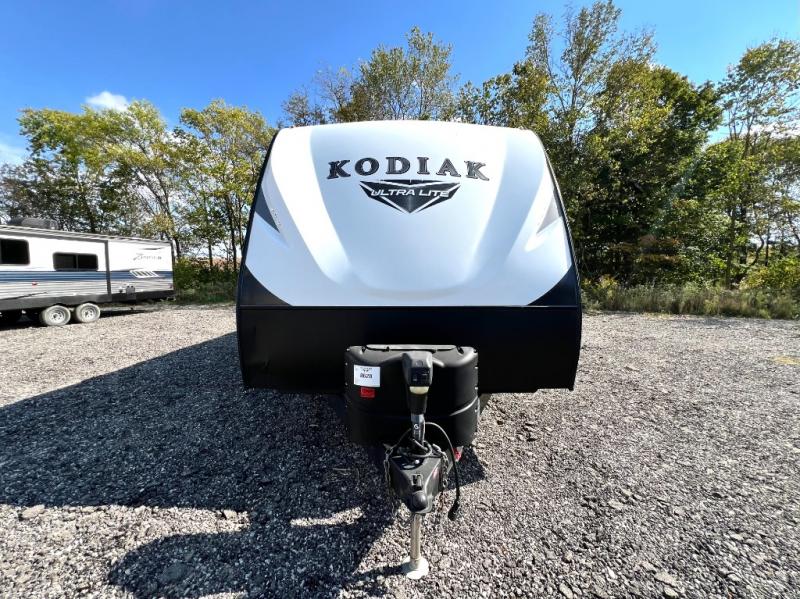 With any Dutchmen Kodiak Ultra-Lite travel trailer you begin with bear cage construction, aluminum framing, a fully laminated exterior, and a fiberglass front cap with LED lights. Some premium features include aluminum entry steps that collapse and expand, solar roof ready prep, and a residential queen bed allowing you to relax in comfort. There are many more reasons you will want to own a Kodiak Ultra-Lite, choose your favorite today!