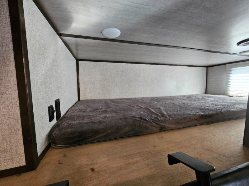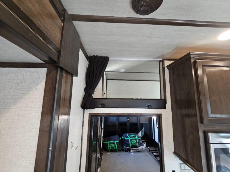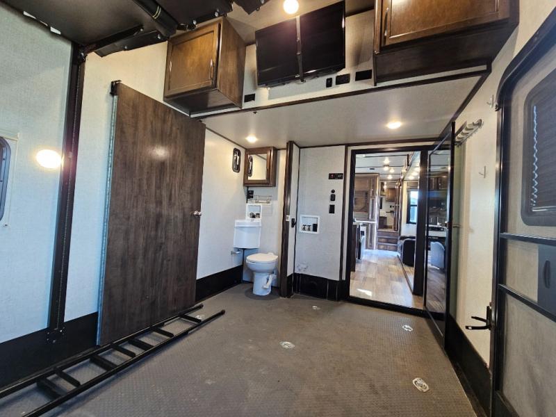 Take this Voltage toy hauler to the lake for some trail-riding fun and don't forget to bring along the family! The 13' separate garage includes a lay-flat Happi-Jack power bunk with two sofas underneath for comfortable sleeping space, and your guests will appreciate their own half bath and their own exterior entry door. You'll find a second entry door leading into the main living area and three sofas for tons of seating space. The chef of the family will love the U-shaped kitchen with plenty of counter space, an 18 cu. ft refrigerator, and an oversized convection microwave. This model also features a dual-entry bath which creates a front master suite that you are sure to love. Here, you will enjoy a king bed with storage underneath, a wardrobe slide, plus dual nightstands for all your things.