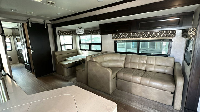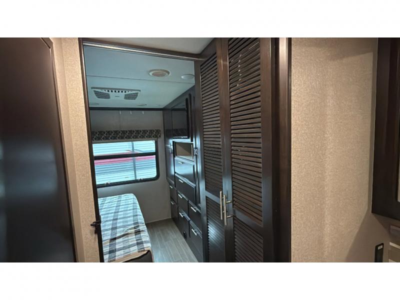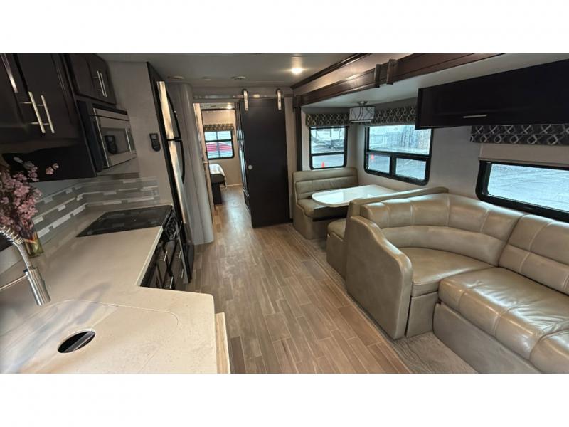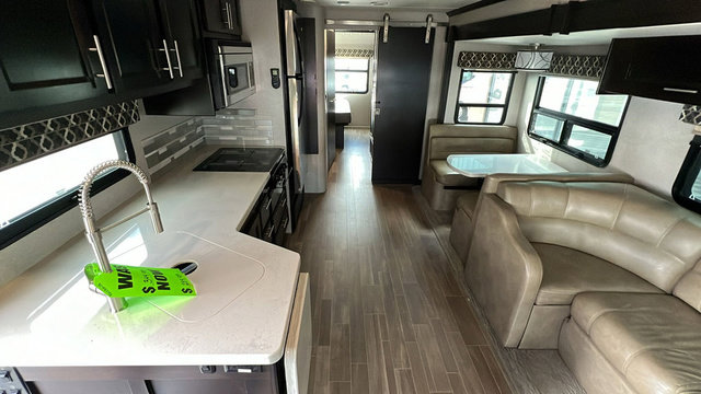 Take one look at this motorhome and you'll see why it was rated Best Of Show in 2019 by RV News! The king bed in the rear bedroom and the cab-over bunk up front, along with the Dream Dinette and sofa sleeper allow this unit to sleep eight people, so invite the whole family along. Once you've arrived at your destination, the chef of the family can prepare lunch in the handy convection microwave and everyone can enjoy it together under the power awning. This unit also features a split bath and a place that has been prepped to add a washer and dryer if you choose. Now that's what I call a home on wheels!