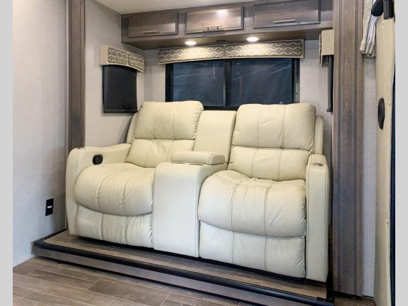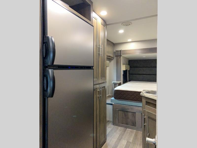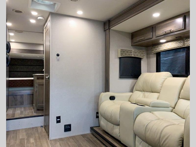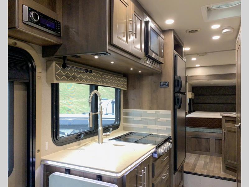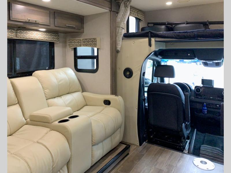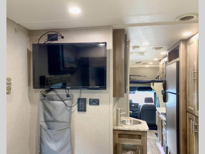 You won't want to pass up your chance to travel luxuriously inside this 24RW Class C diesel motorhome! It features a rear semi-private bedroom with a gel-infused memory foam queen-size bed, a 32" LED TV, and even USB charging ports. The booth dinette is the perfect place for you to enjoy your meals at, play some games, or transform into an extra sleeping space, and if you need even more sleeping space then you can choose to add the optional cab over bunk. When you're ready to wind down your nights, pop a bag of popcorn into the convection microwave oven and then head outdoors to relax underneath the 16' armless awning with LED lights!