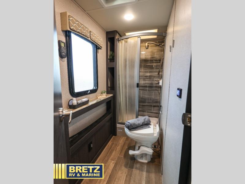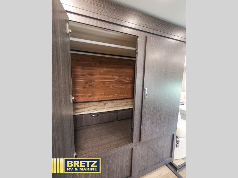 Set your sights on this motorhome that features a full wall slide for maximum interior space. After you've traveled all day, whip up some lunch on the three burner range and enjoying eating together at the Dream Dinette. If you're needing a rest before you head out on the road again, the queen bed with a gel-infused memory foam mattress will provide all the comfort you need. You will love the full bath that includes an Oxygenics Body Spa RV shower head, a skylight, and a stainless steel sink with a residential faucet just like you're used to at home. Bring along all of your valuables since this model features plenty of storage space, including a large cedar-lined wardrobe for all your clothes.