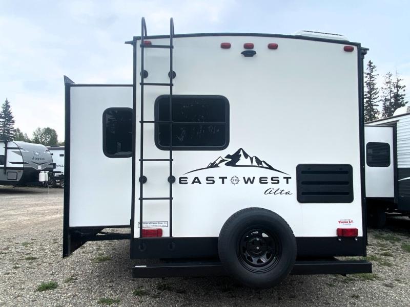 With any Alta by EAST TO WEST your family will receive a lightweight, durable travel trailer that will last for years to come. Each model is built on an automotive deposition coated Norco drop frame, and includes a dual ducted fully walkable vacuum bonded roof, plus an enclosed and heated underbelly which allows you to camp in the summer and winter. And the Universal Docking Station includes all your hookups in one convenient location. Inside, there is an XL picture dinette window, upgraded Shaw linoleum Herringbone flooring, designer solid surface countertops, and much more! Choose your favorite model today!