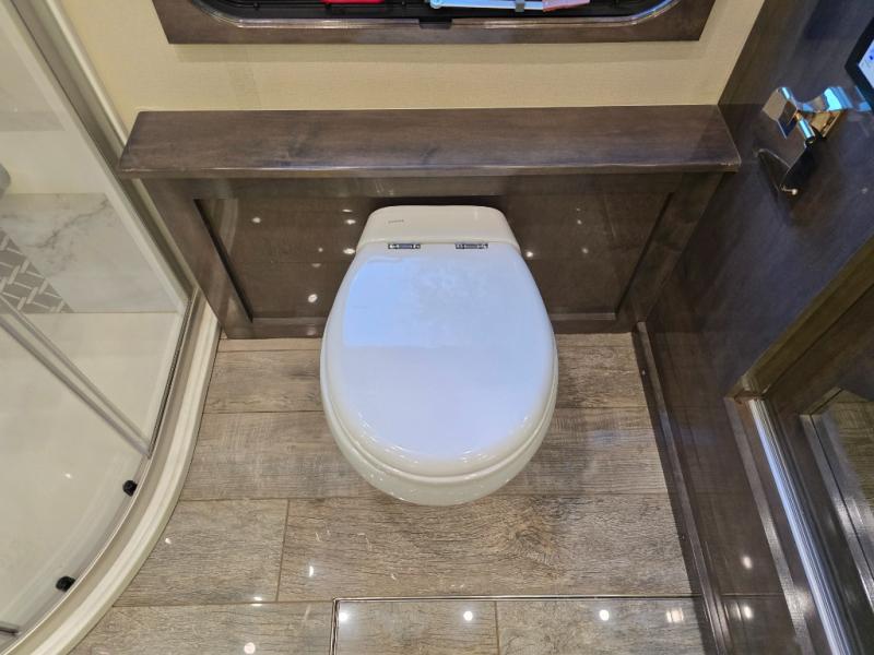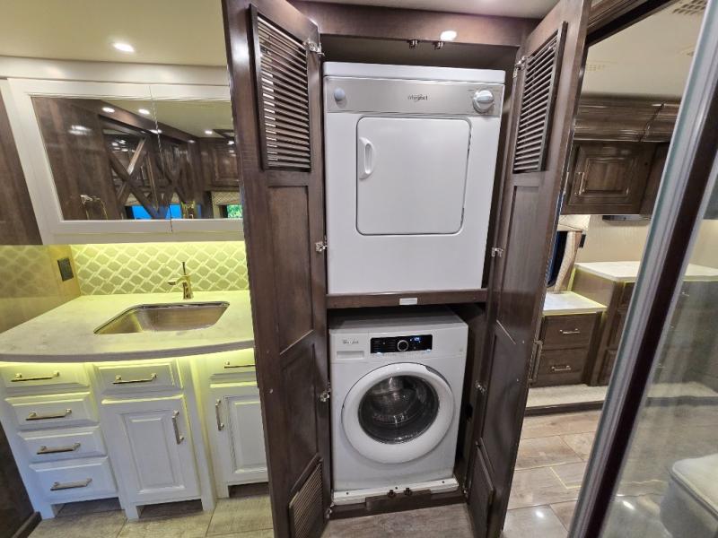 Once you experience the E-Z Steer technology found in the Entegra Coach Anthem Class A diesel motorhome, you will never want to drive anything else ever again! The Anthem has been engineered for the modern traveler with its 15" digital dash, Rand McNally RV navigation, JBL premium audio sound system, and 6-way power seats in the cab. The rest of the Anthem's interior is just as spectacular with its central vacuum system, hand-laid high-gloss porcelain tile floor, and Villa Italian ultraleather furniture. You will also be super impressed to find a Whirlpool stacked washer and dryer so that you can extend your vacations or live full-time on the road.