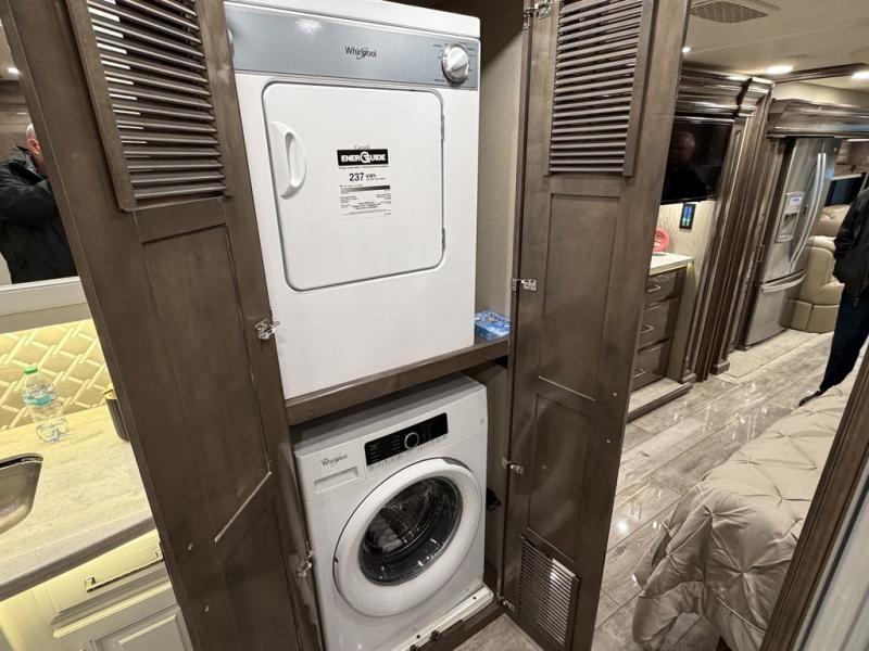 Once you experience the E-Z Steer technology found in the Entegra Coach Anthem Class A diesel motorhome, you will never want to drive anything else ever again! The Anthem has been engineered for the modern traveler with its 15" digital dash, Rand McNally RV navigation, JBL premium audio sound system, and 6-way power seats in the cab. The rest of the Anthem's interior is just as spectacular with its central vacuum system, hand-laid high-gloss porcelain tile floor, and Villa Italian ultraleather furniture. You will also be super impressed to find a Whirlpool stacked washer and dryer so that you can extend your vacations or live full-time on the road.