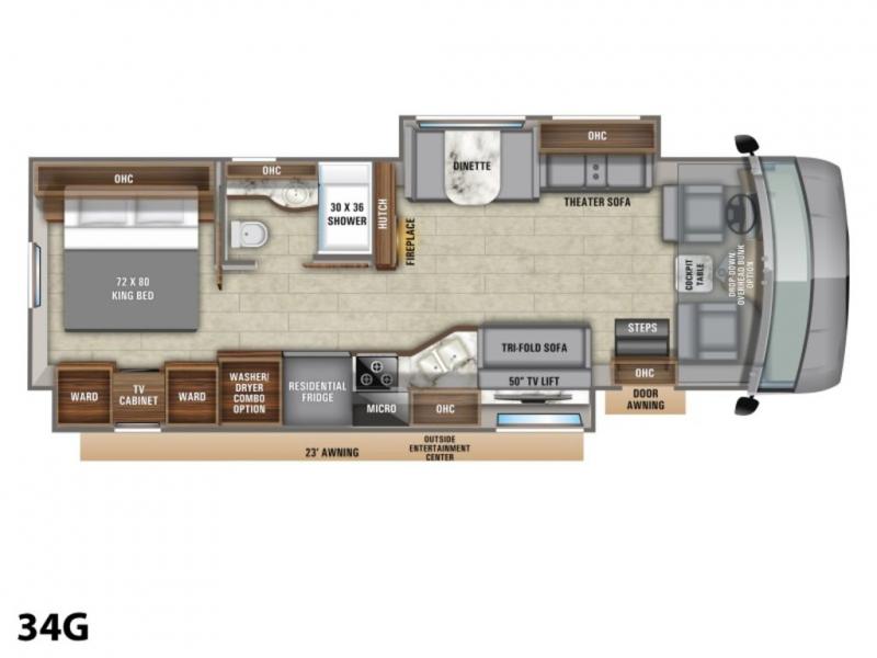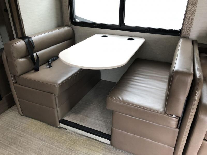 The whole gang will love traveling in this Vision XL Class A gas motorhome! With a tri-fold sofa, a theater sofa, and a booth dinette, everyone will have a comfortable place to sit and socialize together. You will find plenty of entertainment not only inside with the 50" TV on a lift and the fireplace, but also outside with the exterior entertainment center and the 23' electric awning with LED lights to keep you protected from the sun. The rear private bedroom is the perfect place for you to retreat to and enjoy an afternoon nap on the king-size bed or watch a quick episode of your favorite show on the 32" LED TV. Just outside the bedroom is a closet that is prepped for you to add the optional washer/dryer so that you can extend your vacation even longer with clean clothes!