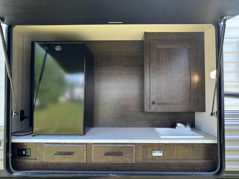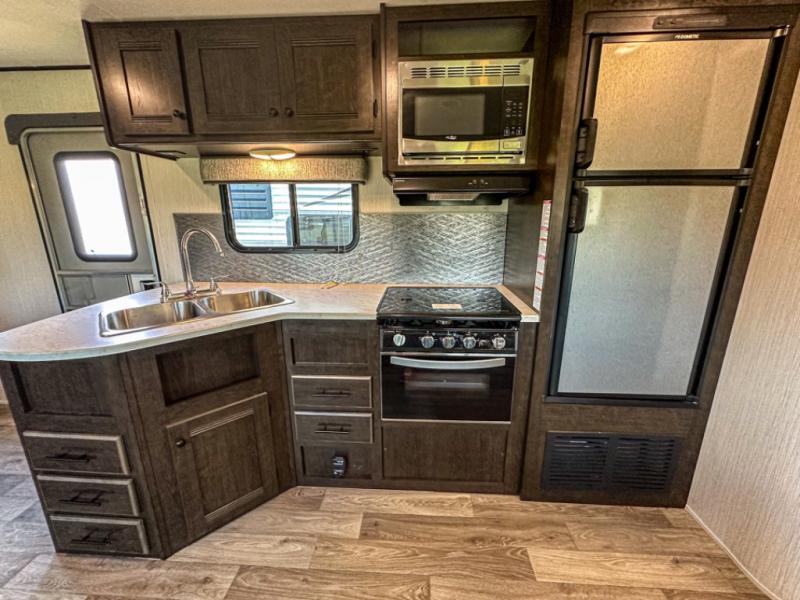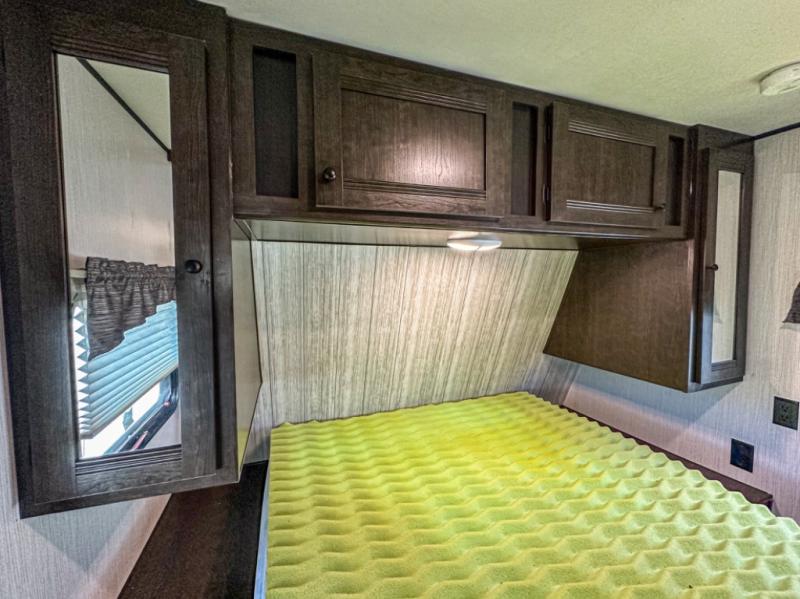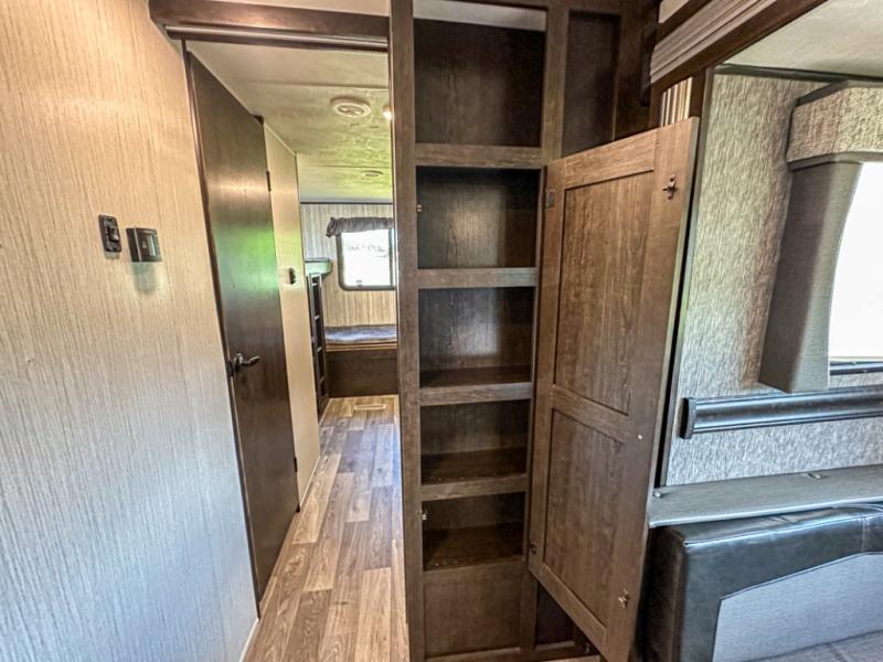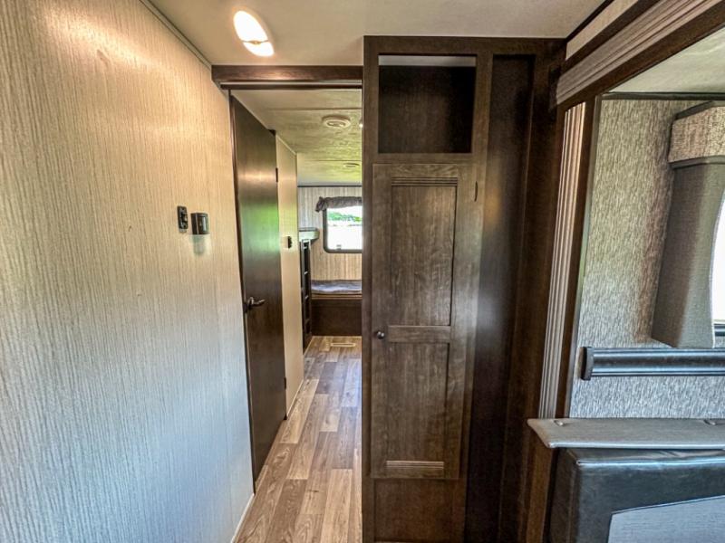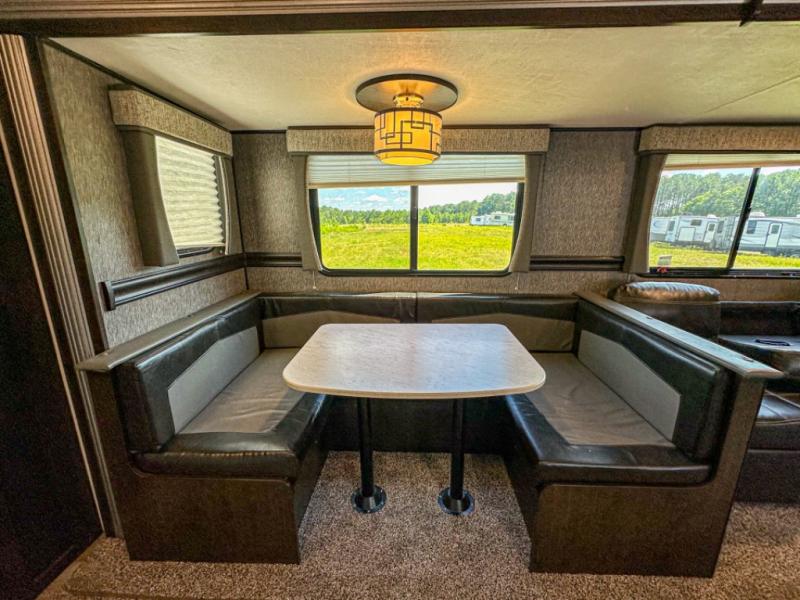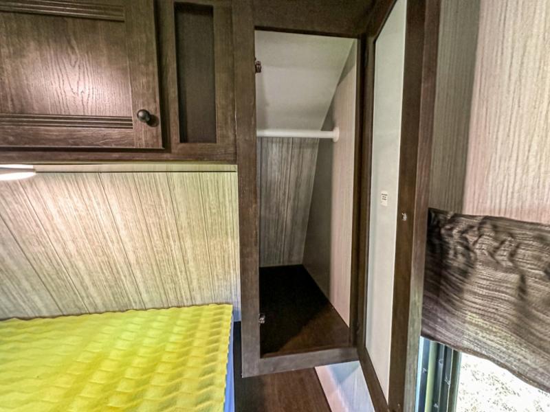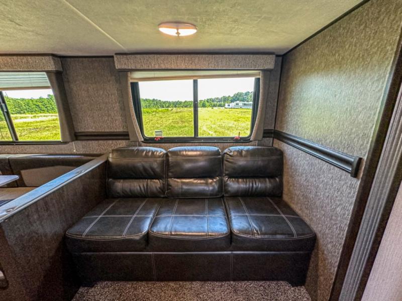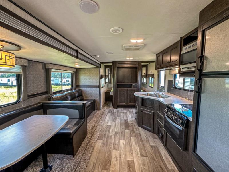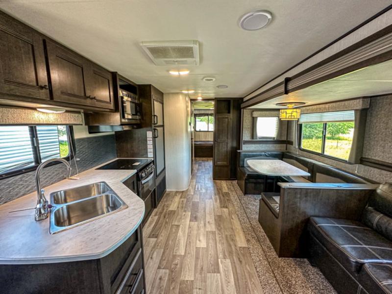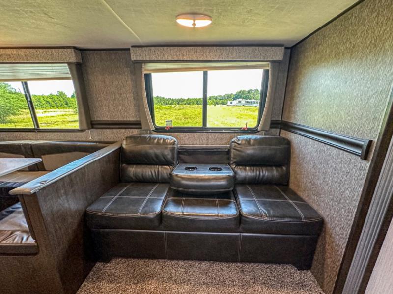 Accommodating, spacious, and comfortable are just a few of the ways you could describe this Pioneer travel trailer! From the private bunkhouse in the back to the private bedroom in the front, this trailer gives you plenty of separated living space to enjoy your time exploring. As you sit down for breakfast at the U-shaped dinette and grab a second cup of coffee, you will appreciate having extra floor space with the large electric-powered slide in the central living area.