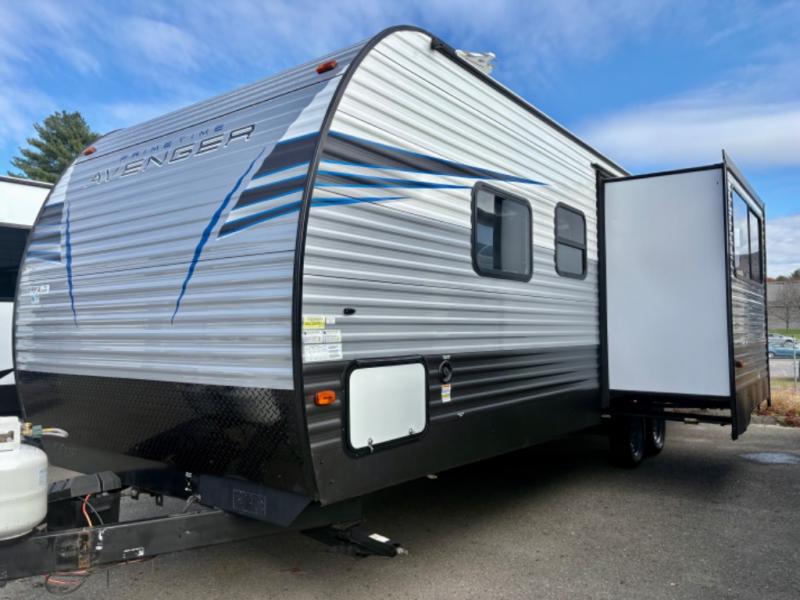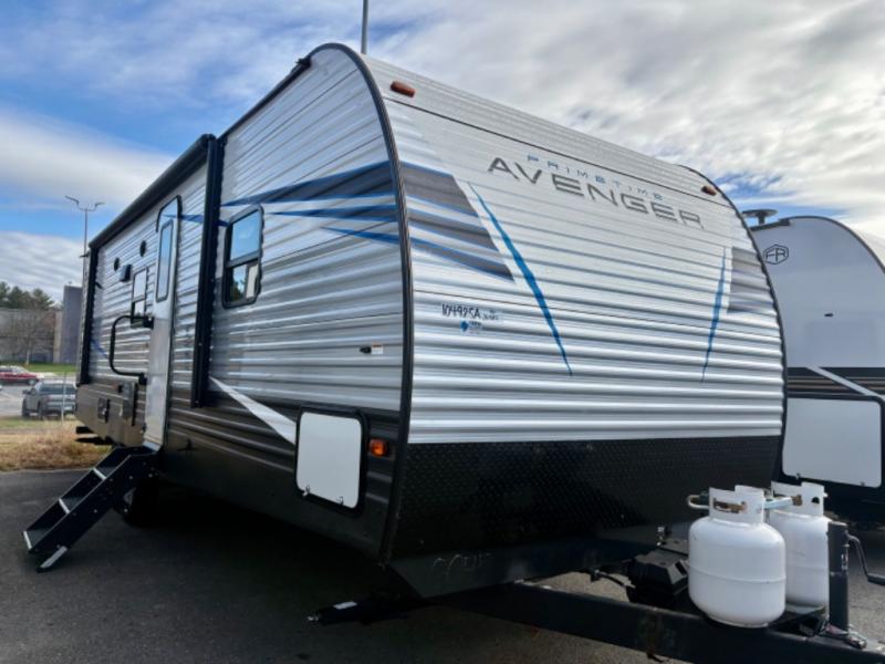 Don't waste any time getting out to your favorite getaway spot with an Avenger travel trailer from Prime Time RV! The Avenger will provide long-term quality and durability because of its exclusive EVERLAST construction, Dexter EZ-Lube axles, diamond-plate rock guard, and Solid Stance fold-down steps. Plus, the Avenger will also deliver industry-leading beauty on the interior with its designer window treatments, its seamless Carefree Congoleum flooring, its large fully vented windows throughout, and its premium fabrics. You will also be grateful to find a massive under-bed storage space so that you can keep extra luggage hidden away and out of sight.