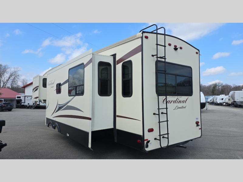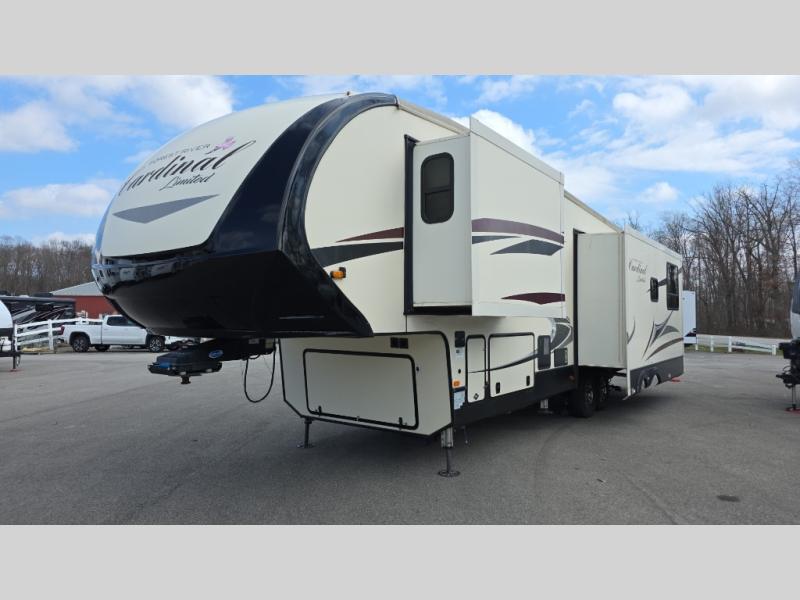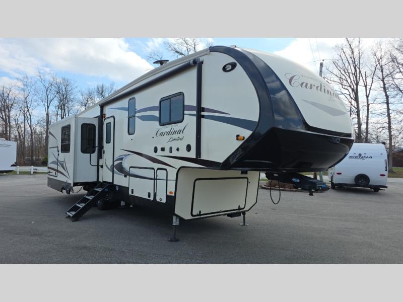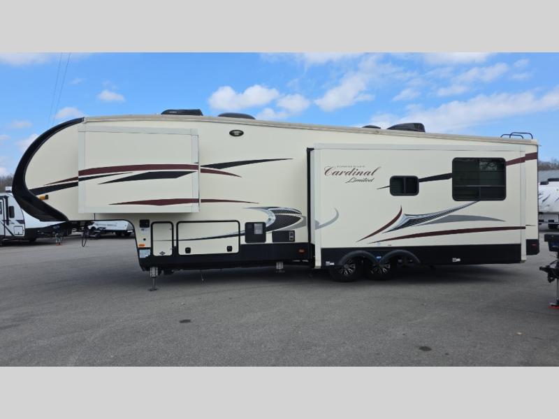 Every one of these Cardinal Limited fifth wheels by Forest River is ready for whatever adventure you crave to go on whether it is an extended stay, a weekend getaway, or even road tripping across the country! They are equipped with affordable luxuries like the six point hydraulic auto-leveling system, the Z-frame pass-through storage, and the Whisper Quiet air conditioners. These models are built with an I-beam "Z" frame powder coated chassis drop frame, a high-gloss premium oyster fiberglass exterior, and a PEX plumbing system so you can be sure to have years of fun with one. There are also three packages loaded with extra features you are going to love having too. So, come choose the best one for you!