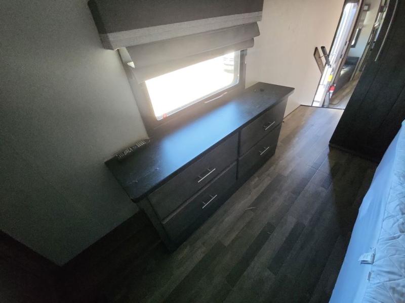 Camping in luxury can be fun and easy with this 3750BKX Cardinal Luxury fifth wheel by Forest River. It features a front private bedroom with a king-size Denver mattress, a wardrobe, a dresser, and a 32" HDTV for those nights when you just can't fall asleep, plus there is even a closet ready for the optional washer/dryer to be added. What better way to start your day than to enjoy a hot shower inside the 48" x 30" shower with a seat and skylight above. Inside the bathroom there is also a porcelain foot flush toilet, a vanity sink, and even a linen closet. The chef of your group is going to love cooking inside the rear kitchen and love the extra counter space even more!