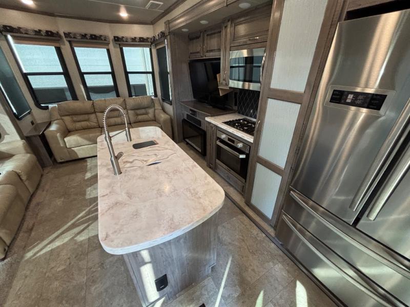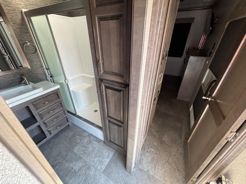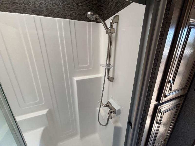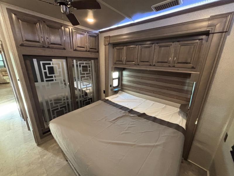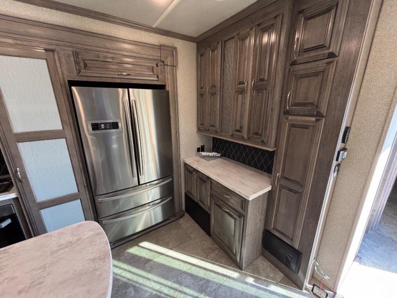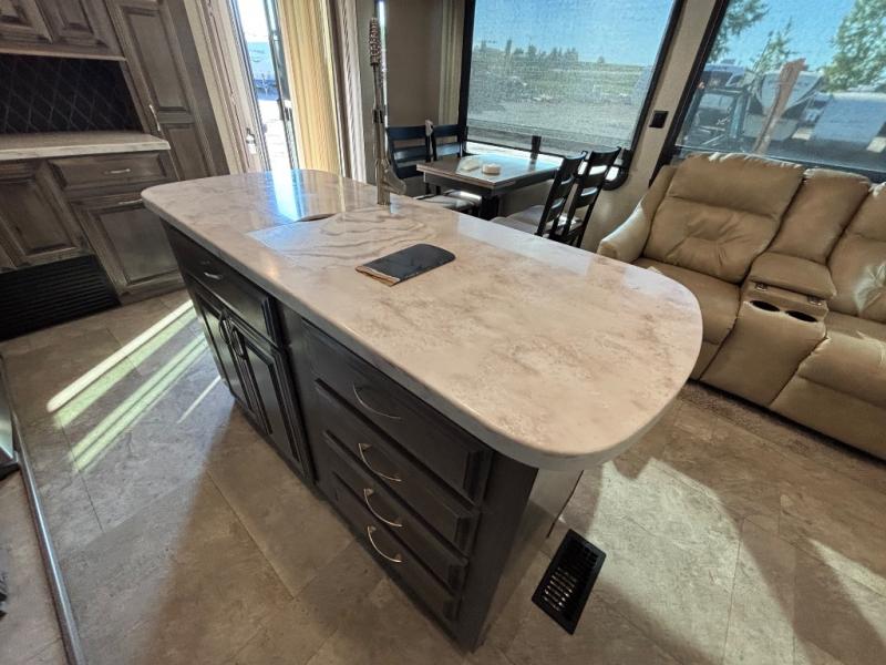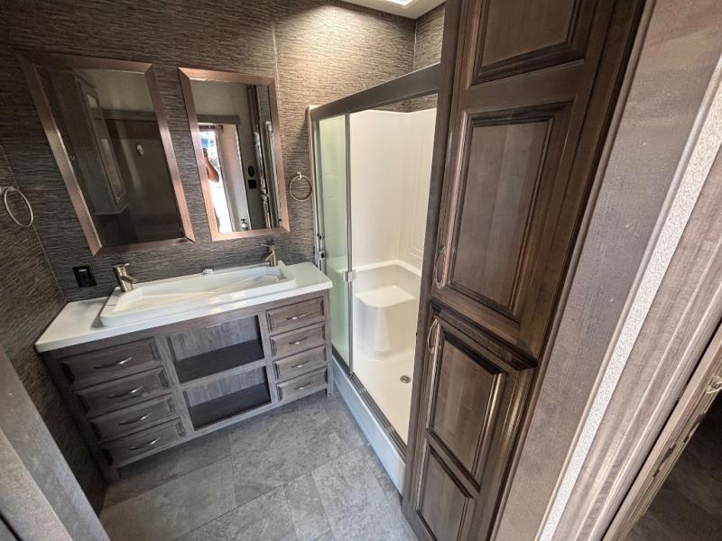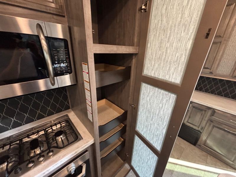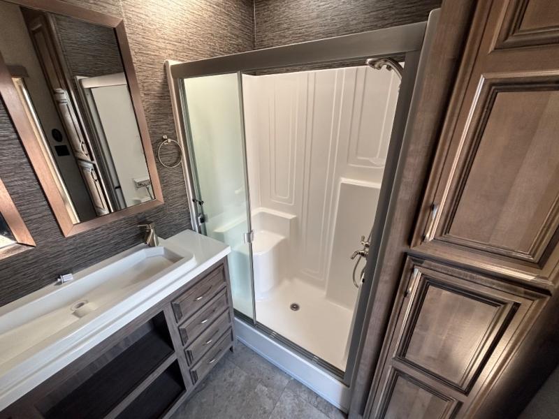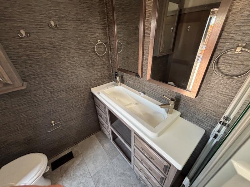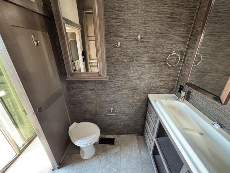 Imagine being at your ranch, farm or lake house with your own bedding, cooking amenities, and even a unique bathroom. You might even have a washer and dryer if you chose that option. If you enjoy cooking, the Chef's kitchen offers everything you will need plus a 20 cu. ft. double drawer residential refrigerator and a full pantry. The island includes an Infinity light medallion, and the kitchen's one-piece backsplash is attractive. You can relax or entertain in the living area, and stay cozy by the fireplace. The bathroom will impress you with the single drain sink including double faucets each time you wash your hands or brush your teeth. The "Champagne Dreamer" king bed mattress, the nine-drawer, tall boy dresser, and the make-up vanity desk allow you to relax and unwind each night. This is the one!