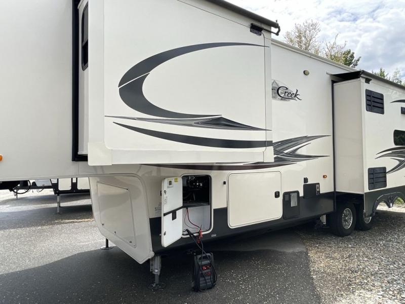 Each Cedar Creek Hathaway Edition fifth wheel by Forest River begins with Cedar Creek's famous all aluminum superstructure on a Z-frame with metal wrapped skirting to the frame, includes a full, walk-on roof with TPO vinyl roof covering, and Silaprene bonded sidewalls that are resilient and grow stronger with age, plus offer outstanding resistance to UV, heat, cold, moisture and much more! The living room includes larger full view windows that open for ventilation, the kitchen offers an Insignia, free standing gas range and full extension drawer glides with self-closing drawers, and the bathroom is redesigned with a trough sink, upgraded shower head, and more! Make a smart choice, experience a Cedar Creek Hathaway Edition today!