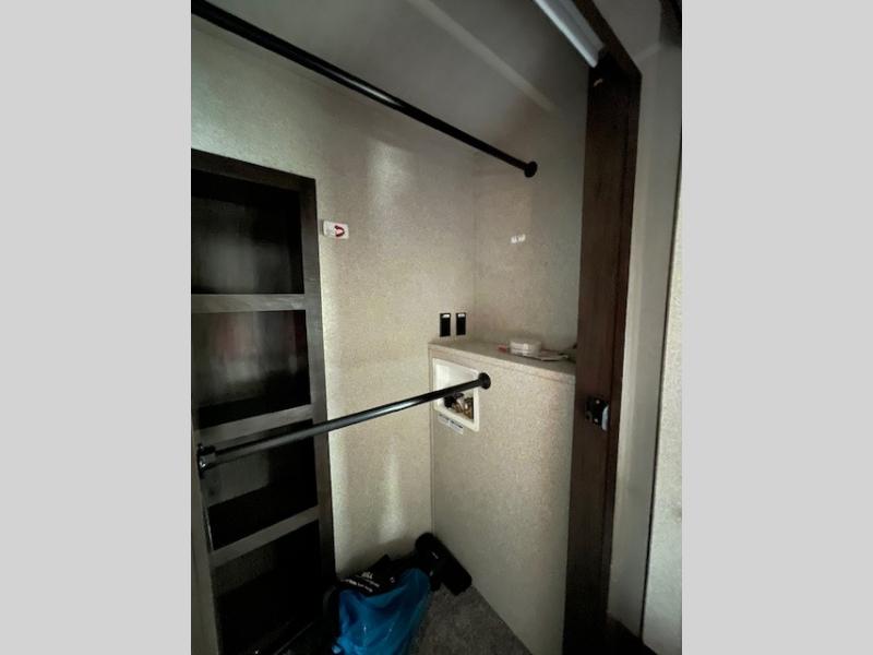 Come see just how fun and comfortable your next camping trip can be with this 33IK Forest River Cedar Creek Silverback fifth wheel. With triple slides you will have plenty of living space throughout this model for your family of four. The combined kitchen and living area have plenty of space to relax plus there is a 50” TV on swing arm, a fireplace, and a hide-a-bed sofa that will be great for any overnight guests. This model includes a kitchen island that provides more counter space and a pantry for all your dry goods. When it's finally time to call it a night, the front private bedroom with a king bed slide out will provide a great night's rest and you'll appreciate the redesigned front wardrobe closet that includes removable shelves so you can add a washer and dryer if you choose.