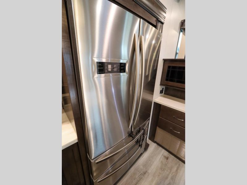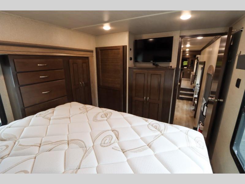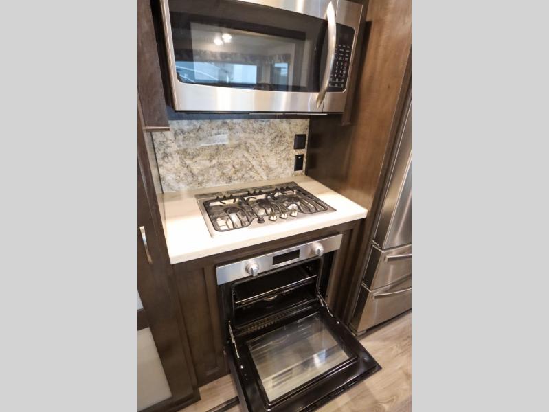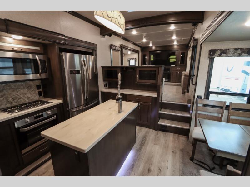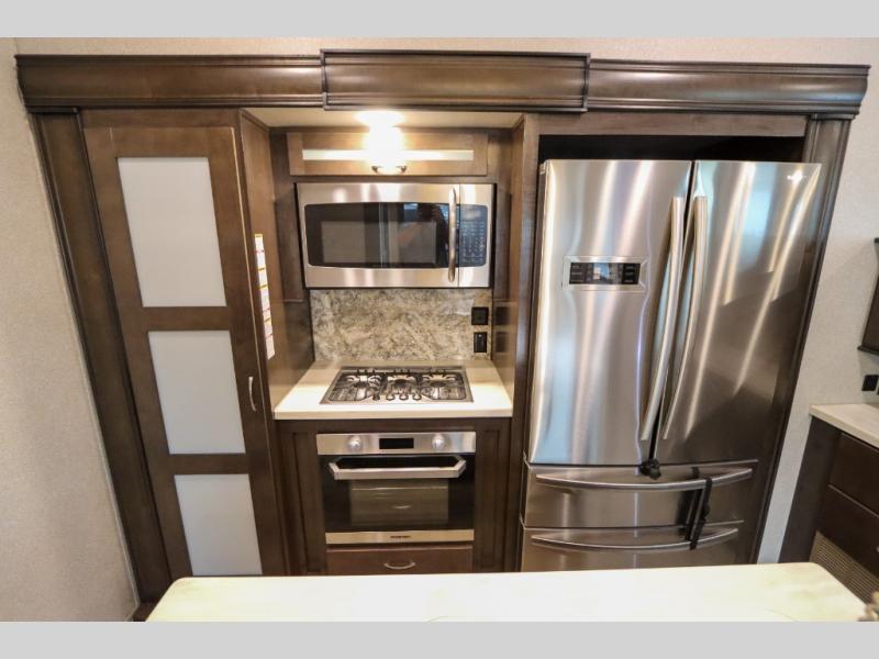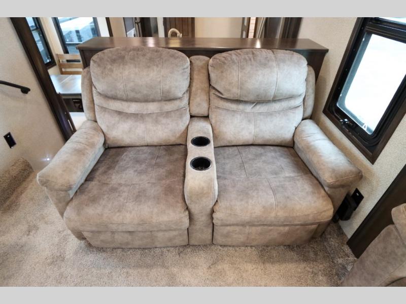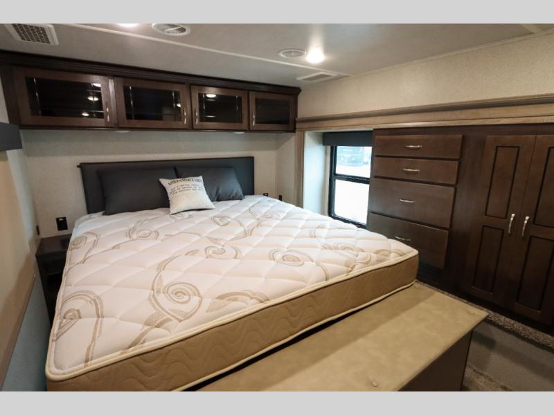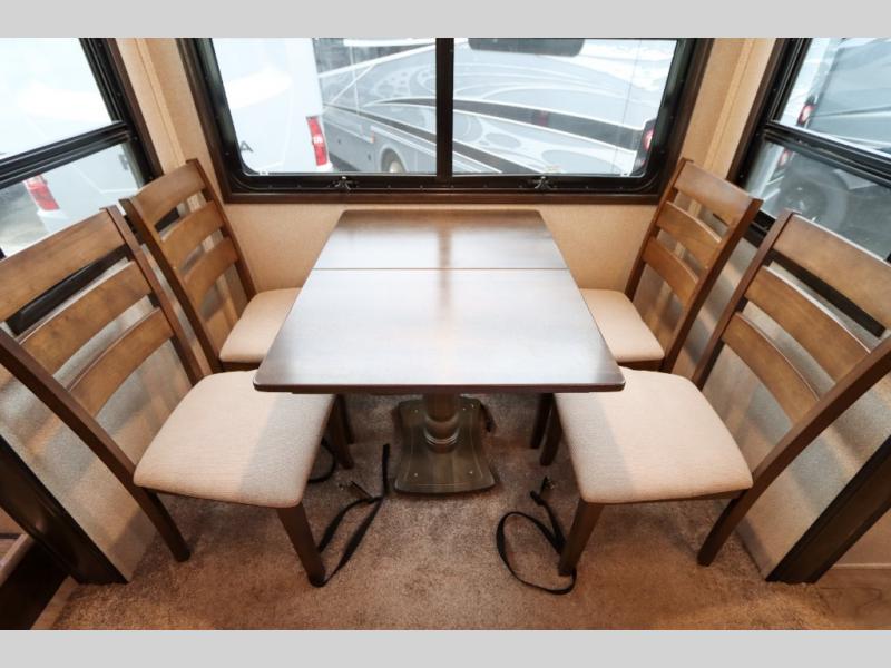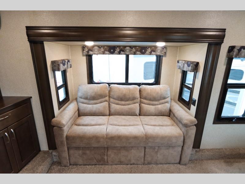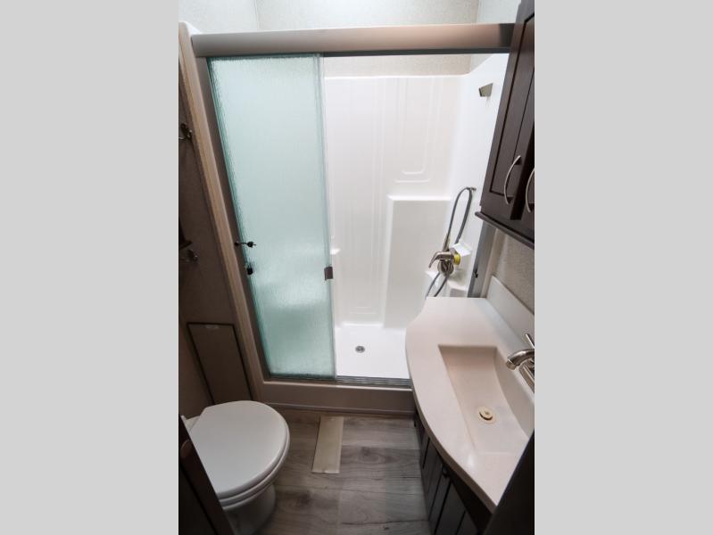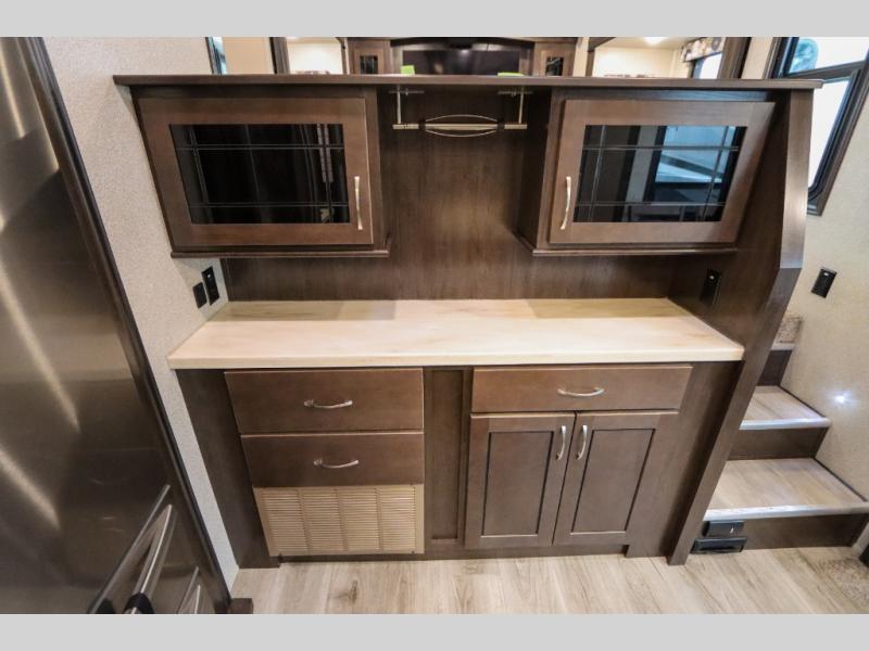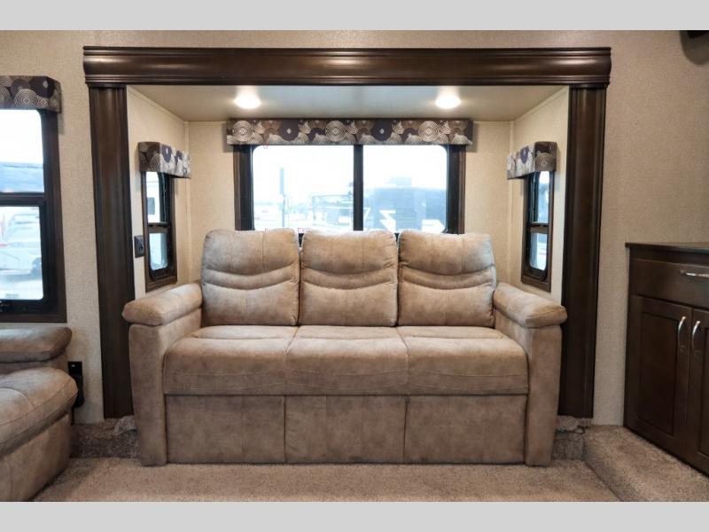 With any Forest River Cedar Creek Silverback Edition fifth wheel you will find Congoleum carefree flooring throughout and in the dining slide there is Shaw carpeting. The kitchen has everything that you would expect to find at home and more from the Furrion chef's kitchen with a gas cooktop, to the full panel backsplash, you won’t be disappointed! The 36" electric fireplace, the Jensen 12 volt CD/DVD/AM/FM/MP3/USB stereo system with a smart control app and Bluetooth, and the 50" LED TV with a swing arm in the living room are sure to be crowd pleasers! Each fifth wheel is constructed with Cedar Creek's famous all aluminum super-structure with a radius wrap metal skirt, and a Z-frame. Plus each comes with a Dexter safety and performance package which includes Dexter axles/brakes/suspension, and a Dexter E-Z flex rubber equalization system with bronze bushings and six greased zerks per side. You are sure to love camping in any one of these Forest River Cedar Creek Silverback fifth wheels so come choose your favorite one today!