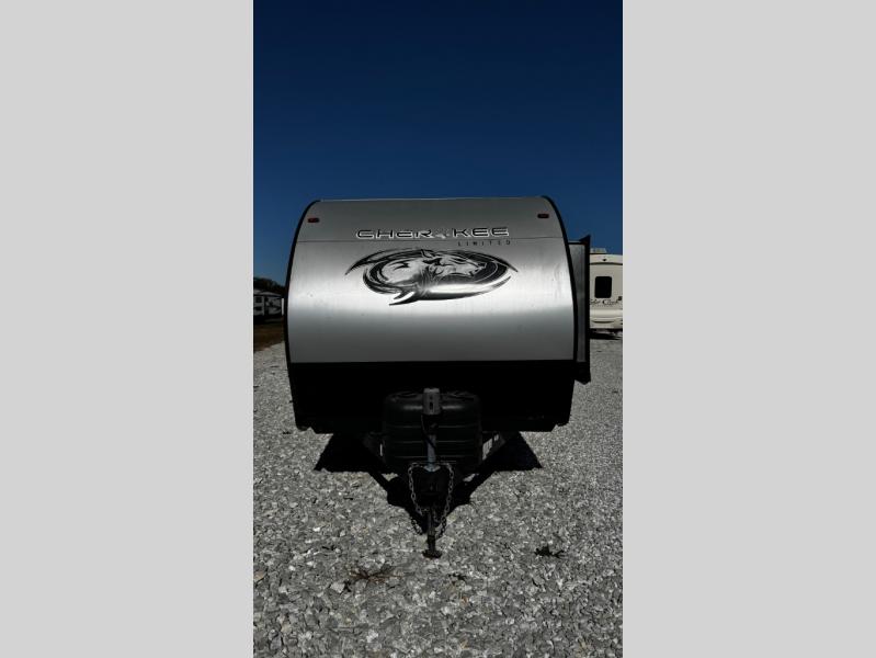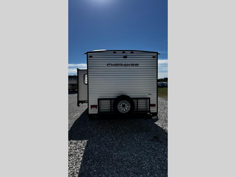 No matter which Cherokee model by Forest River you choose, you can rest assured knowing that each unit is built to provide you with great value, comfort, and style making it easy to get up and go as soon as the urge strikes. Each model features two-toned exterior metal and upgraded graphics, a one-piece rubber roof with 3/8" walkable roof decking, and a front stone guard for protection. Inside of each unit, you will enjoy comfortable seating and mocha-stained shaker-style cabinets. There are also a variety of optional packages available that will provide additional features, like the Base Camp Package, the Campfire Package, and the Limited Package. So when the open road calls, answer with your very own Cherokee travel trailer or toy hauler in tow!