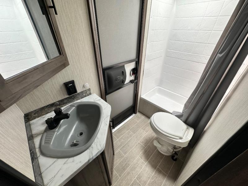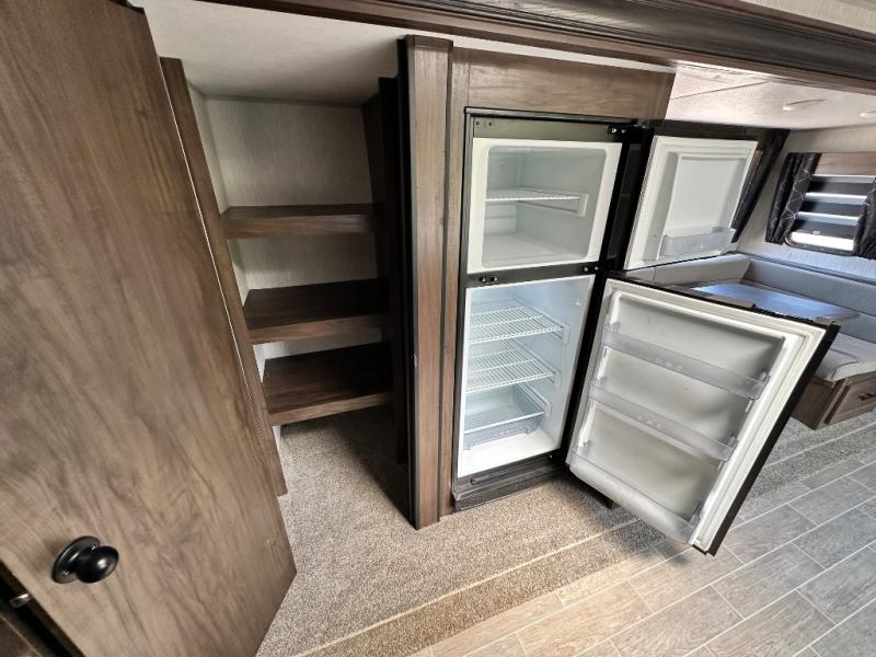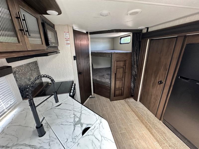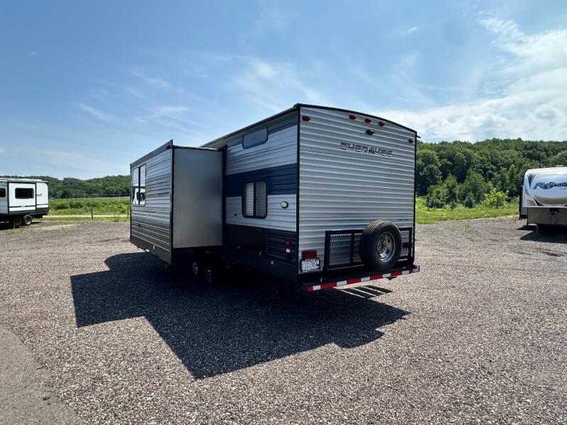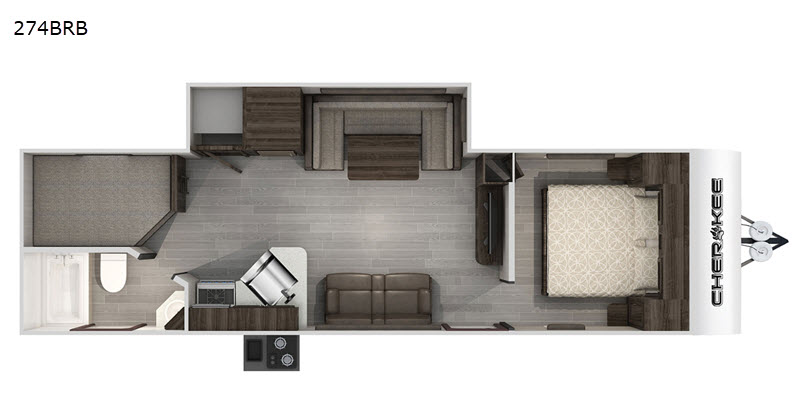 You won't want to miss out on a single adventure with this Cherokee travel trailer! The two entry doors provide an easy way to get in and out while you load up your gear for a weekend of fun, and once you have arrived at the campsite and settled in, you'll be able to pull out the large slide so that you can have some extra living space on the interior. After a long and tiresome day, you'll certainly be ready to turn in for the night, and you will be so happy to find a private bedroom up front where you can comfortably drift off to sleep while your kids sleep on the double-size bunks in the back of this unit.