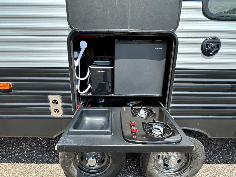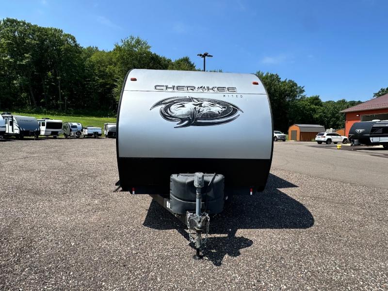 No matter which Cherokee model by Forest River you choose, you can rest assured knowing that each unit is built to provide you with great value, comfort, and style making it easy to get up and go as soon as the urge strikes. Each model features two-toned exterior metal and upgraded graphics, a one-piece rubber roof with 3/8" walkable roof decking, and a front stone guard for protection. Inside of each unit, you will enjoy comfortable seating and mocha-stained shaker-style cabinets. There are also a variety of optional packages available that will provide additional features, like the Base Camp Package, the Campfire Package, and the Limited Package. So when the open road calls, answer with your very own Cherokee travel trailer or toy hauler in tow!
