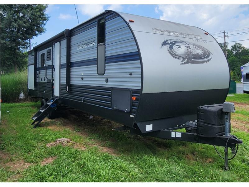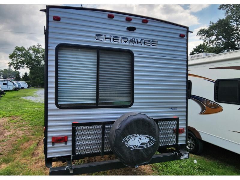 No matter which Cherokee model by Forest River you choose, you can rest assured knowing that each unit is built to provide you with great value, comfort, and style making it easy to get up and go as soon as the urge strikes. Each model features two-toned exterior metal and upgraded graphics, a one-piece rubber roof with 3/8" walkable roof decking, and a front stone guard for protection. Inside of each unit, you will enjoy comfortable seating and mocha-stained shaker-style cabinets. There are also a variety of optional packages available that will provide additional features, like the Base Camp Package, the Campfire Package, and the Limited Package. So when the open road calls, answer with your very own Cherokee travel trailer or toy hauler in tow!