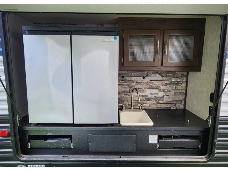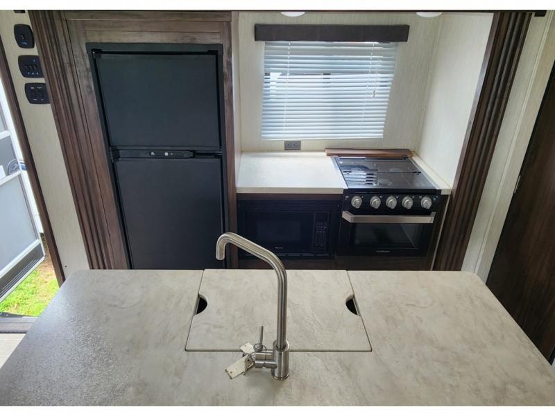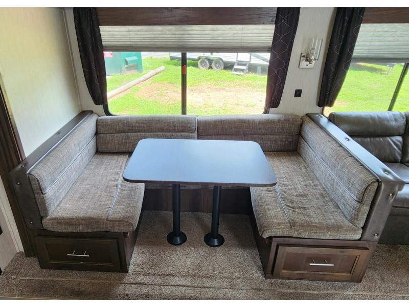 This is the ultimate family-friendly travel trailer! You will love all of the space inside this Cherokee travel trailer. From the three slides to the rear private bunkhouse for your kids, there is room for everyone and everything! The kitchen features a large island with a sink, plus a U-shaped dinette for you to enjoy your meals at. Throughout this model there are overhead cabinets, optional 40" storage drawers under the dinette, and exterior storage compartments, and there is even a master suite up front so that you can take a moment to enjoy peace and quiet whenever you need.