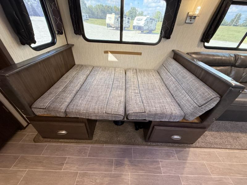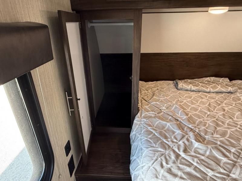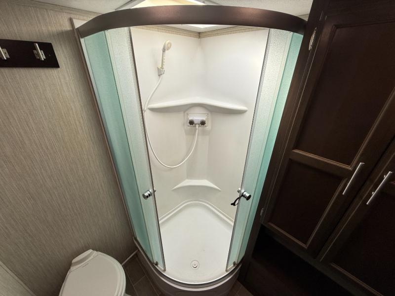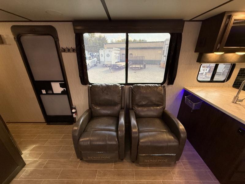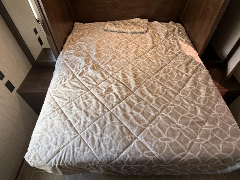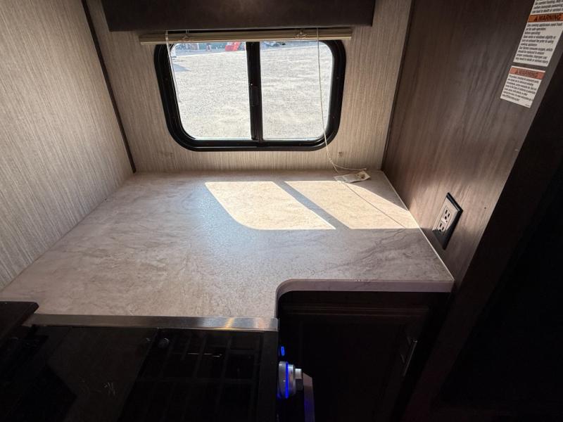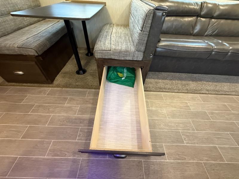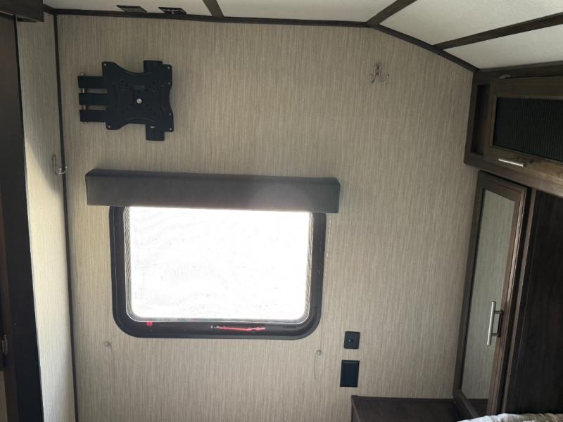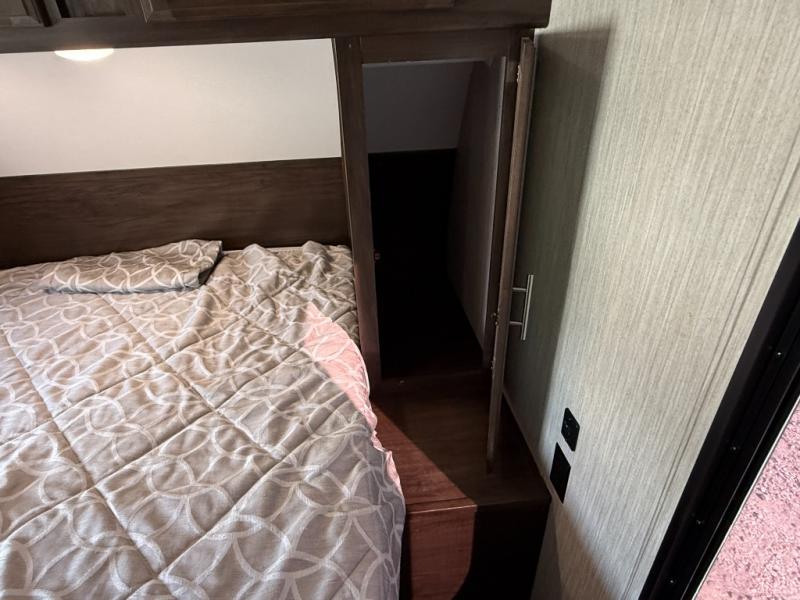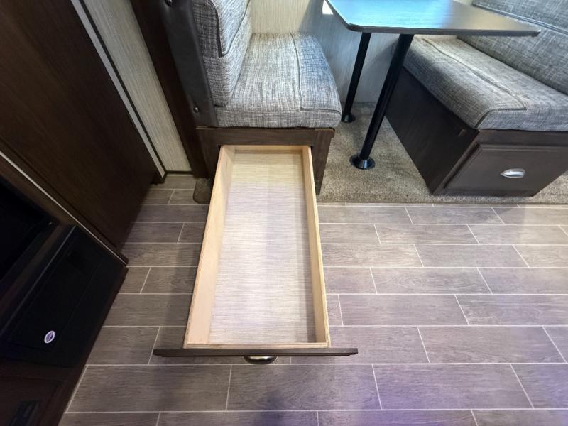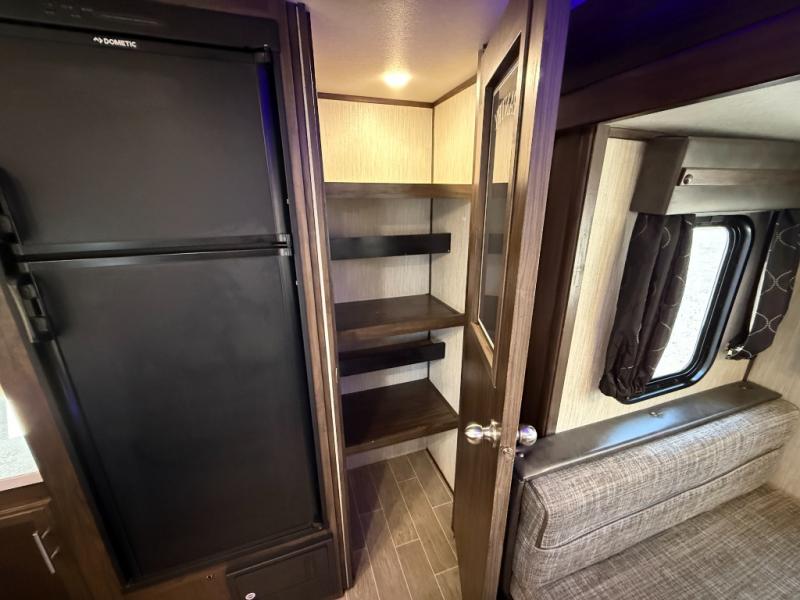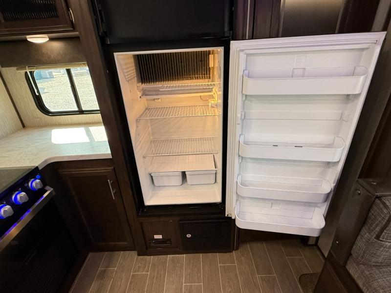 This Cherokee Alpha Wolf travel trailer is excellent for a smaller family or group of individuals who are looking to explore the country without losing the comforts of home. With a full kitchen and large pantry, you will find it easy to prepare dinner each evening, and the single slide that houses the booth dinette and sofa give you extra space to sit and chat with the chef. You will achieve complete relaxation on the queen-size bed in the front master suite, and the private bathroom entrance will allow you to quickly and conveniently get ready each morning.
