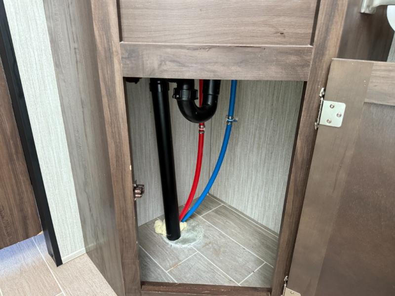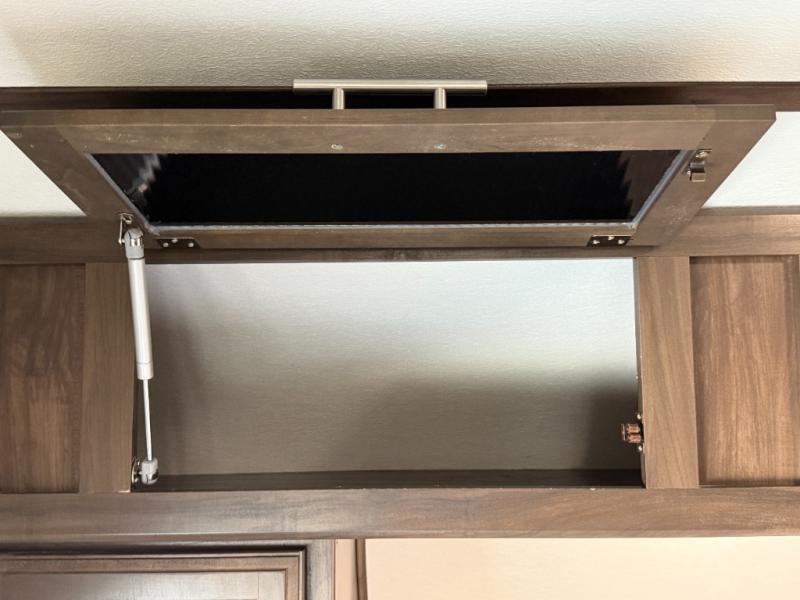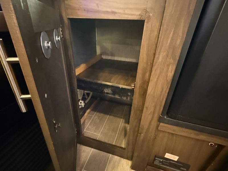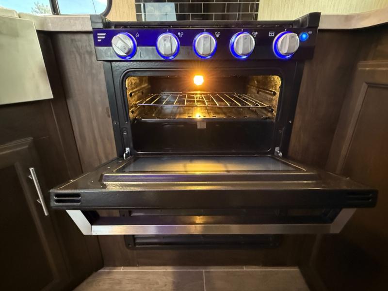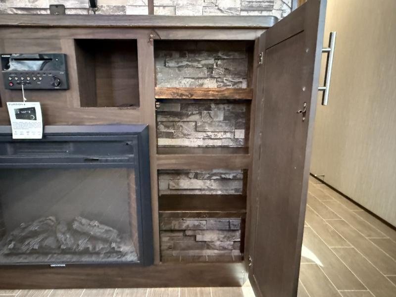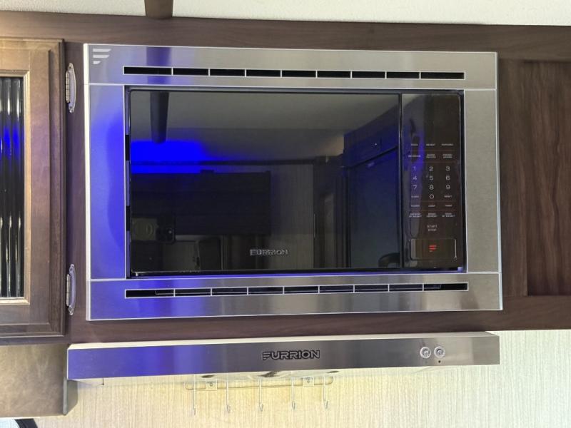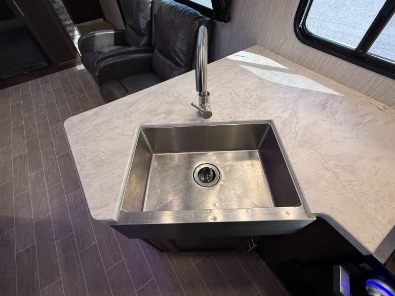 The Cherokee Alpha Wolf travel trailer is the first of Cherokee's line up to be fully laminated, which makes it lightweight, well insulated, and able to provide a sleek and modern exterior. The tire pressure monitoring system and exterior shower with hot and cold water add to the usefulness and value of the Alpha Wolf, and the LED lighting on both the exterior and interior delivers a bright and cheerful atmosphere no matter what time of day it is. Inside of the Alpha Wolf you will find blackout kitchen appliances in the kitchen and plenty of storage for your pots and pans underneath the sink.