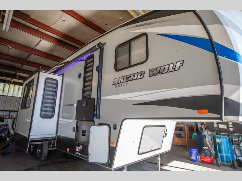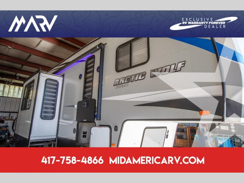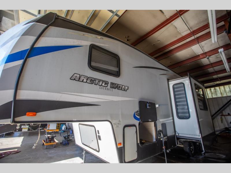 Forest River is redefining the RV buyer expectations with these best in class Cherokee Arctic Wolf lightweight fifth wheels! Each model is built with luxurious amenities at an entry level price point, and are designed to be towed by light duty trucks. From the 1X engineered wood SuperTruss roof structure that is fully walkable, the tongue and grove plywood floor decking, and the many exterior and interior features that come standard or within the two packages depending on the model you choose, you will be happy with any Cherokee Arctic Wolf fifth wheel.
