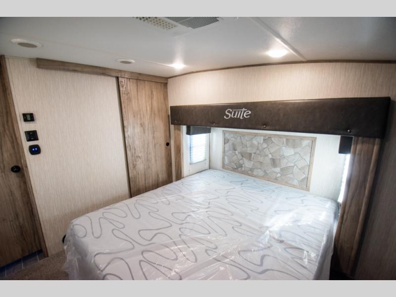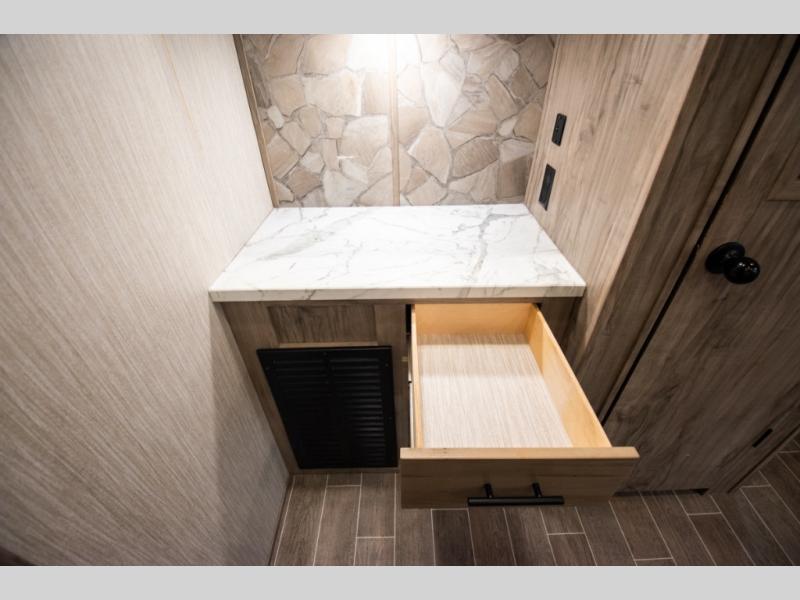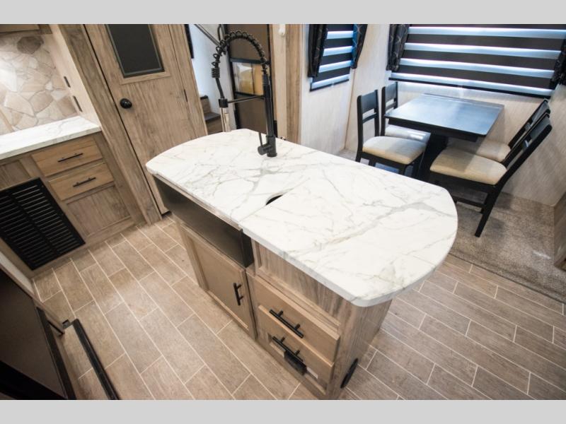 With any Cherokee Arctic Wolf Suite by Forest River you can be sure you're getting a fifth wheel packed with amenities. The NXG frame technology provides a lightweight, yet strong foundation for your unit and the forced air heated and enclosed underbelly along with the Insulator Series woof roof and floor superstructure will allow you to comfortably camp in any season. Inside you'll enjoy LED lighting, seamless counter tops, multiple USB stations, and a Nautilus style shower with a retractable door just to name a few features. Each unit also includes an outside shower with hot and cold water, backup camera prep, and a Arctic "Step Above" entry step, plus many more comforts to make every camping experience an enjoyable one.