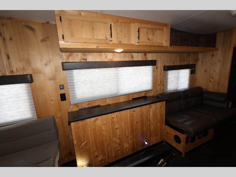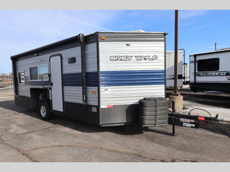 All Forest River Cherokee Grey Wolf models are quality built with distinct features and superior comfort in mind, and they are all set at an affordable price point. So, when you get the opportunity to escape the hustle and bustle of everyday life to enjoy all the beauty and wonder that an outdoor adventure holds, the Cherokee Grey Wolf is ready and waiting to help you relax and unwind. Each unit features an outdoor shower with hot and cold water for you to get cleaned up without tracking mud throughout after your adventurous hike, and with the RVQ quick connect, you can easily hook up a low-pressure grill to cook up your best burgers outdoors. Inside, you will enjoy the HDMI entertainment center, the LED lighting throughout, and a kitchen skylight with a shade, and if you get tired of being indoors during inclement weather, the outdoor power awning will provide protection.