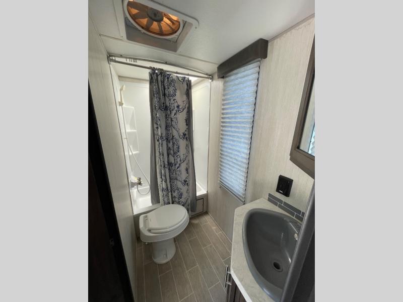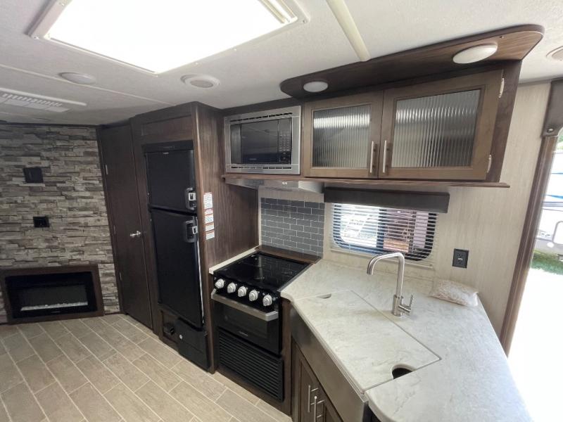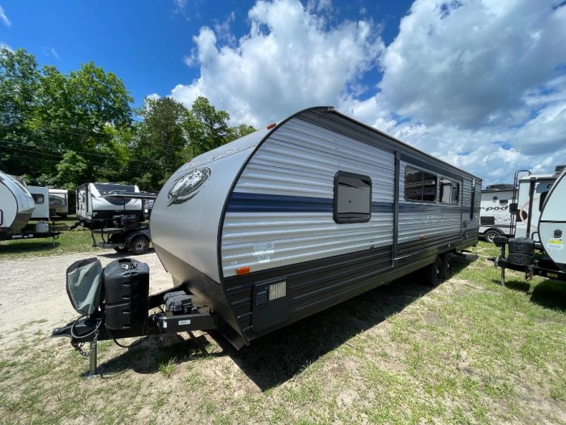 All Forest River Cherokee Grey Wolf models are quality built with distinct features and superior comfort in mind, and they are all set at an affordable price point. So, when you get the opportunity to escape the hustle and bustle of everyday life to enjoy all the beauty and wonder that an outdoor adventure holds, the Cherokee Grey Wolf is ready and waiting to help you relax and unwind. Each unit features an outdoor shower with hot and cold water for you to get cleaned up without tracking mud throughout after your adventurous hike, and with the RVQ quick connect, you can easily hook up a low-pressure grill to cook up your best burgers outdoors. Inside, you will enjoy the HDMI entertainment center, the LED lighting throughout, and a kitchen skylight with a shade, and if you get tired of being indoors during inclement weather, the outdoor power awning will provide protection.