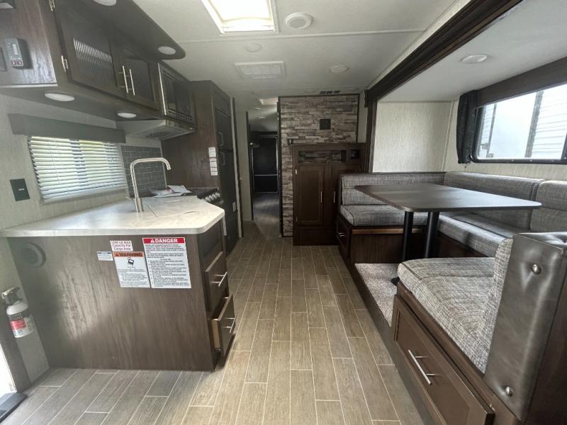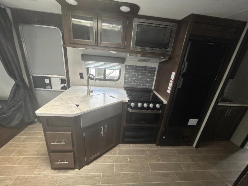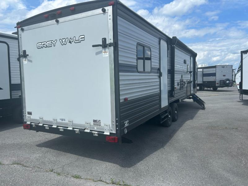 All Forest River Cherokee Grey Wolf models are quality built with distinct features and superior comfort in mind, and they are all set at an affordable price point. So, when you get the opportunity to escape the hustle and bustle of everyday life to enjoy all the beauty and wonder that an outdoor adventure holds, the Cherokee Grey Wolf is ready and waiting to help you relax and unwind. Each unit features an outdoor shower with hot and cold water for you to get cleaned up without tracking mud throughout after your adventurous hike, and with the RVQ quick connect, you can easily hook up a low-pressure grill to cook up your best burgers outdoors. Inside, you will enjoy the HDMI entertainment center, the LED lighting throughout, and a kitchen skylight with a shade, and if you get tired of being indoors during inclement weather, the outdoor power awning will provide protection.