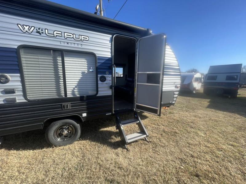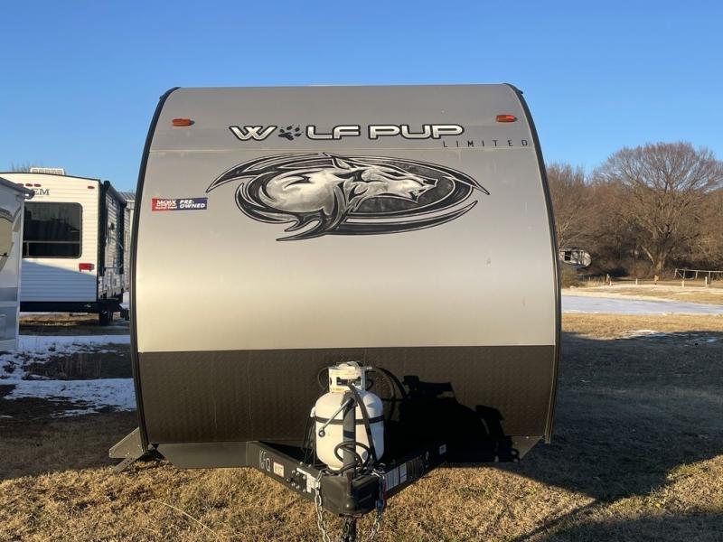 Each one of these Forest River Cherokee Wolf Pup travel trailers and toy haulers are lightweight and easy to tow! They are fully self contained with ample tank capacities, an abundance of storage space, and filled with at home amenities. The aerodynamic smooth radius front profile, the Power Gear frame technology, and the space saver rail design make them easier to maneuver. You will also appreciate the seamless roofing membrane with heat reflectivity to keep the sun from making your unit a hot box. The tongue and groove plywood flooring will hold up for years of fun and the USB charging stations help to keep your electronics at 100% while you're away. Come find the best model for you today!