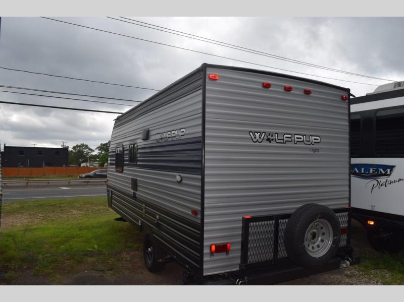 The Cherokee Wolf Pup travel trailer and toy hauler by Forest River are lightweight and easy to tow with ample storage for all your things. The aerodynamic radius front profile allows for better gas mileage, and the one-piece walkable decked roof allows you to easily clean off the unit after a fun weekend. You'll enjoy features such as USB charging stations to keep everyone's phones charged, a power awning with an LED light strip allowing you to stay outside longer, a seamless countertop, and an outside shower with hot and cold water to clean the dishes or even yourself, plus more! Pick the floorplan that works best for you, and start camping tomorrow!