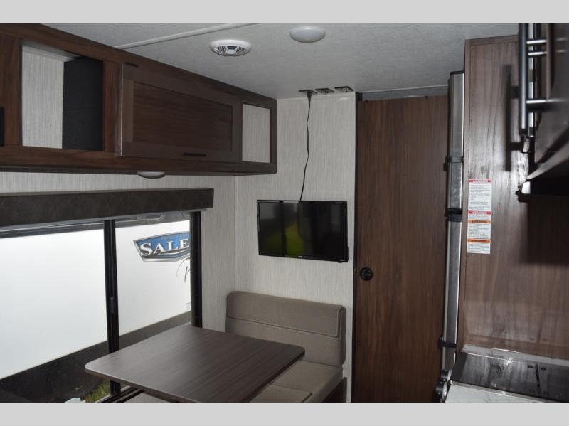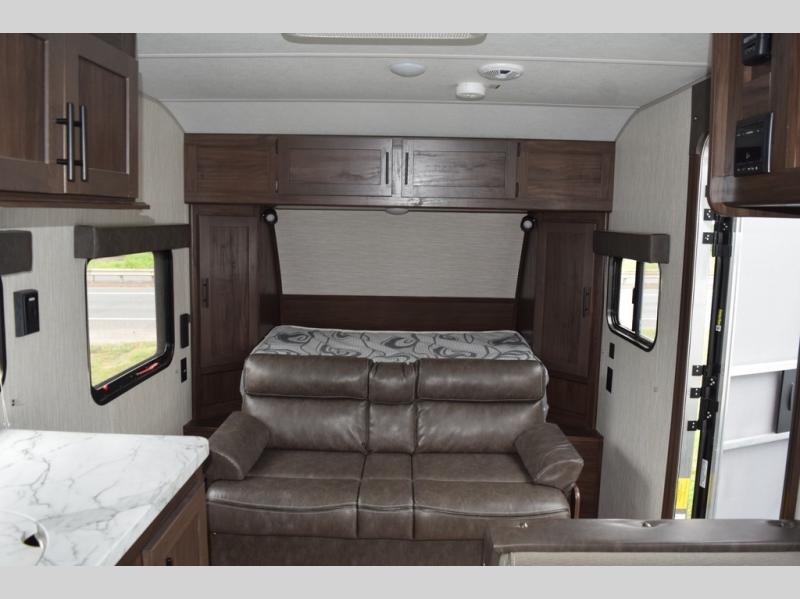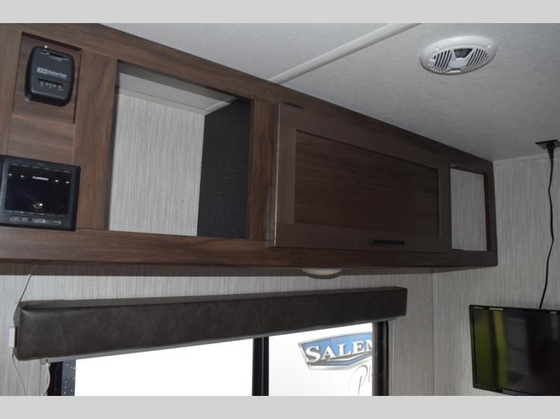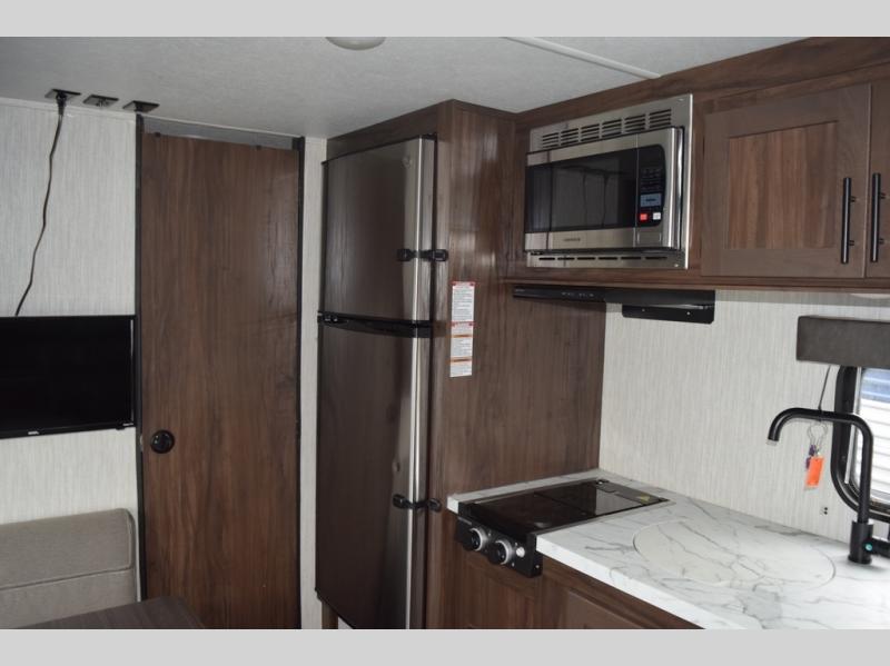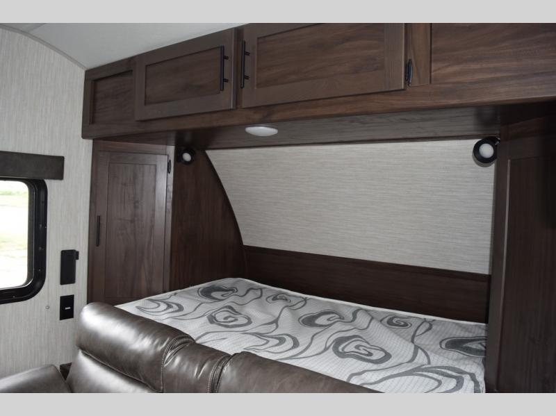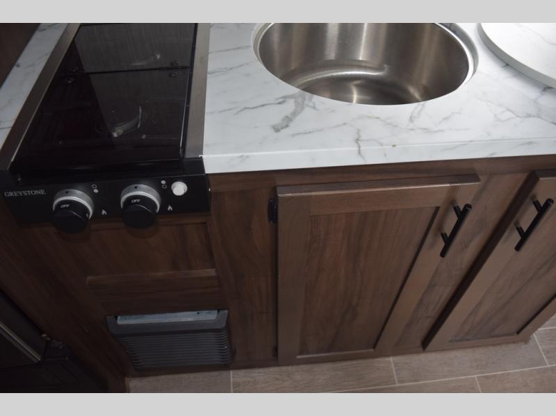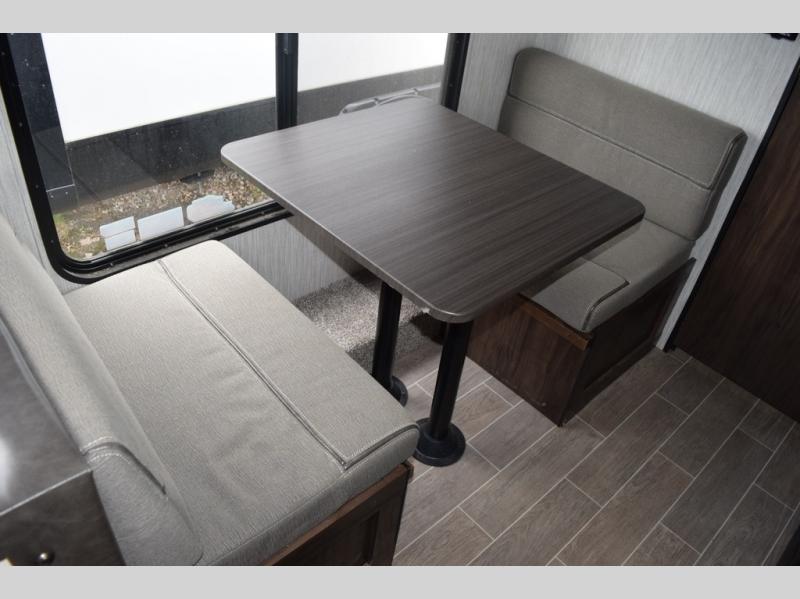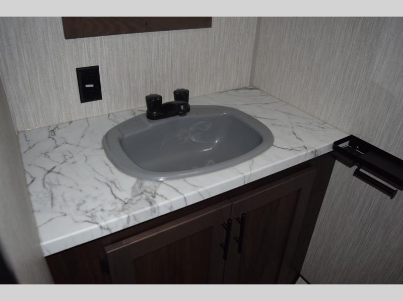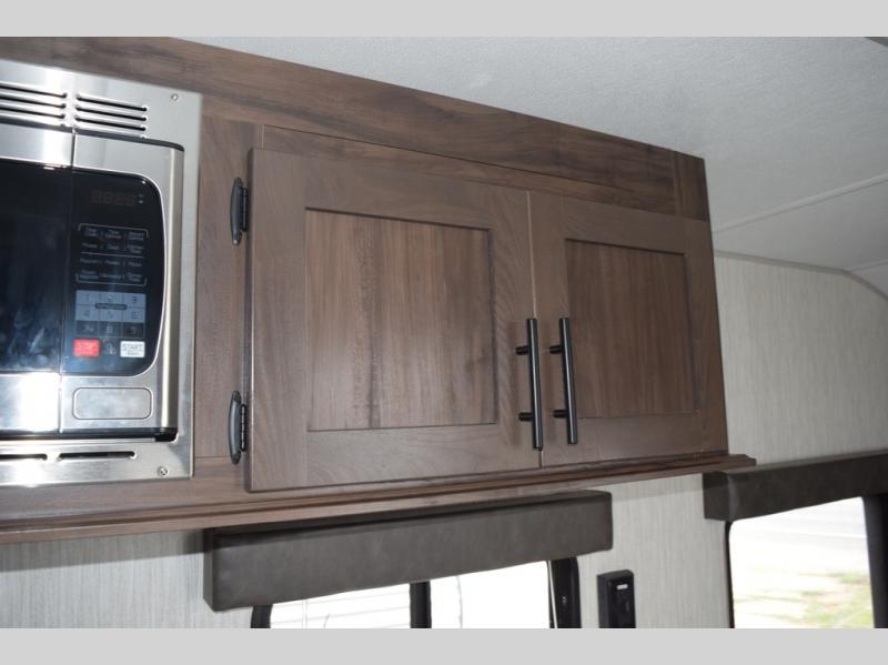 Whether you are a couple or a family that enjoys camping with your own accommodations, you will enjoy this trailer. From the Cherokee Sleep System with storage on each side and above, and the dinette that doubles as sleeping space for the kiddo, you can sleep on your own sheets each night. The full bathroom allows you to skip the public facilities, and the kitchen amenities will allow you to cook inside whenever you like. You will also find storage throughout the inside as well as along the exterior for your outdoor gear.