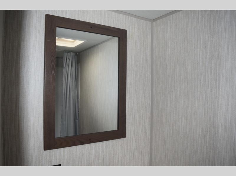 What I liked most: The cabinets are deep which allows for more storage, we all know how important that is. The bed area is open and has plenty of arms reach counter space and overhead storage. The bathroom seems to be a good size. Ceiling speaker system is a nice touch.