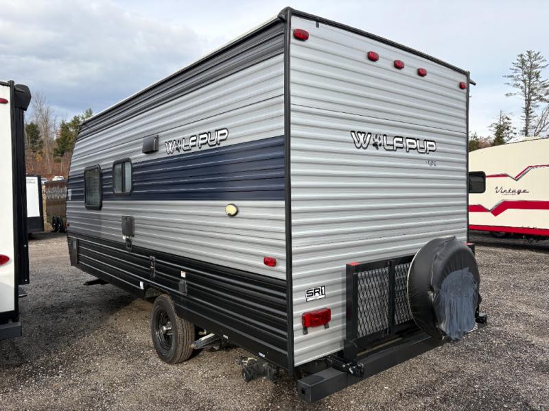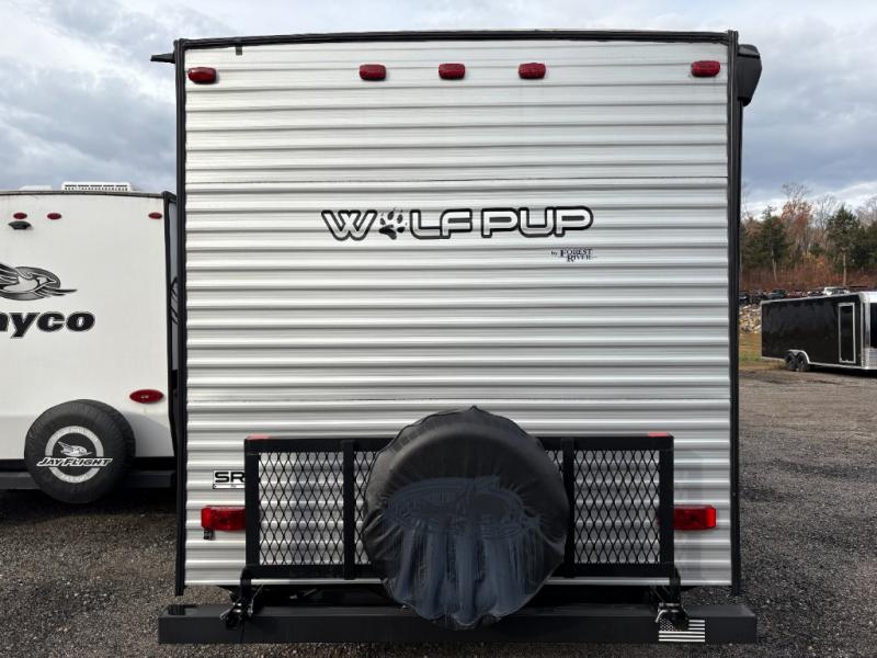 The Cherokee Wolf Pup travel trailer and toy hauler by Forest River are lightweight and easy to tow with ample storage for all your things. The aerodynamic radius front profile allows for better gas mileage, and the one-piece walkable decked roof allows you to easily clean off the unit after a fun weekend. You'll enjoy features such as USB charging stations to keep everyone's phones charged, a power awning with an LED light strip allowing you to stay outside longer, a seamless countertop, and an outside shower with hot and cold water to clean the dishes or even yourself, plus more! Pick the floorplan that works best for you, and start camping tomorrow!