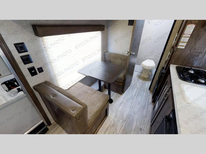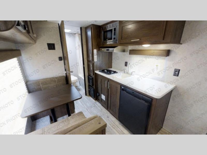 Whether you are a couple or a family that enjoys camping with your own accommodations, you will enjoy this trailer. From the Cherokee Sleep System with storage on each side and above, and the dinette that doubles as sleeping space for the kiddo, you can sleep on your own sheets each night. The full bathroom allows you to skip the public facilities, and the kitchen amenities will allow you to cook inside whenever you like. You will also find storage throughout the inside as well as along the exterior for your outdoor gear.