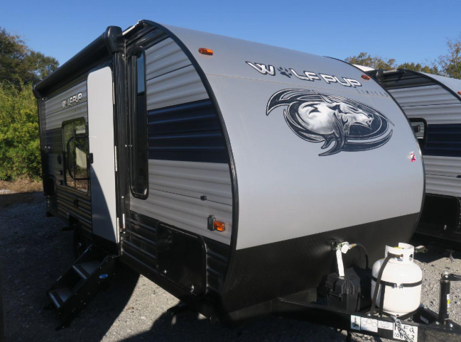 The Cherokee Wolf Pup travel trailer and toy hauler by Forest River are lightweight and easy to tow with ample storage for all your things. The aerodynamic radius front profile allows for better gas mileage, and the one-piece walkable decked roof allows you to easily clean off the unit after a fun weekend. You'll enjoy features such as USB charging stations to keep everyone's phones charged, a power awning with an LED light strip allowing you to stay outside longer, a seamless countertop, and an outside shower with hot and cold water to clean the dishes or even yourself, plus more! Pick the floorplan that works best for you, and start camping tomorrow!