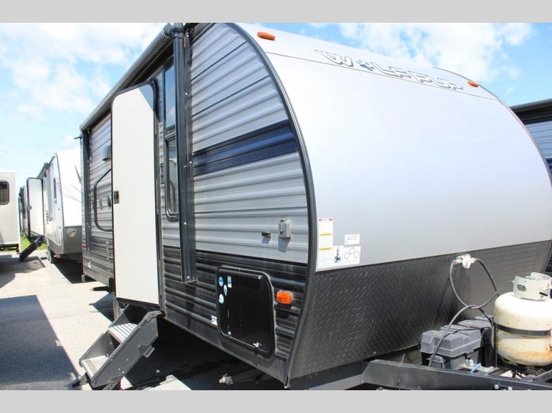 When you choose to camp with a Cherokee Wolf Pup travel trailer, or the toy hauler, you are getting an easily towable lightweight trailer as well as ample room throughout each model. The aerodynamic radius front profile allows for better gas mileage, and the one-piece walkable decked roof allows you to easily clean off the top of your unit after a weekend trip. You'll enjoy features such as an awning with an LED light strip, a high-gloss seamless countertop, and an outside shower with hot and cold water, plus more! With a carbon monoxide detector, safety glass windows, and a smoke detector in each unit, these travel trailers and toy hauler have been constructed with your family's safety in mind. Come select your favorite Wolf Pup model today!