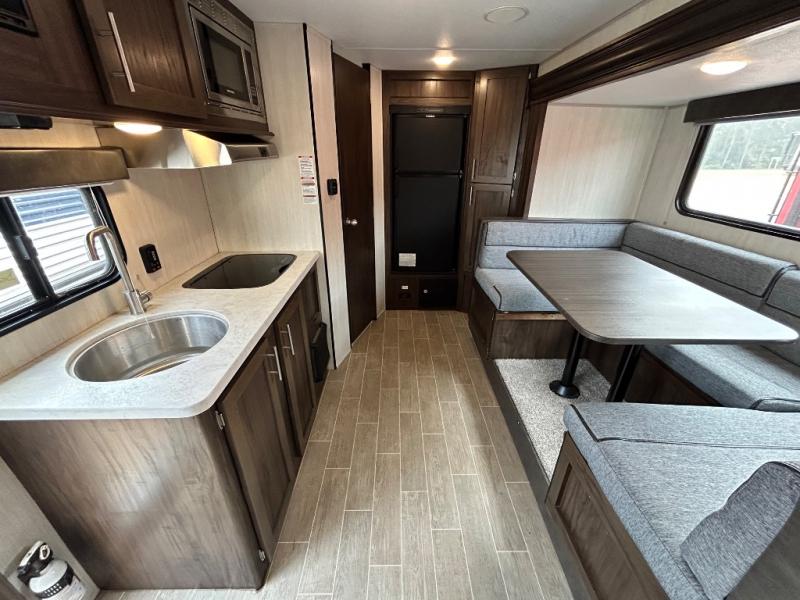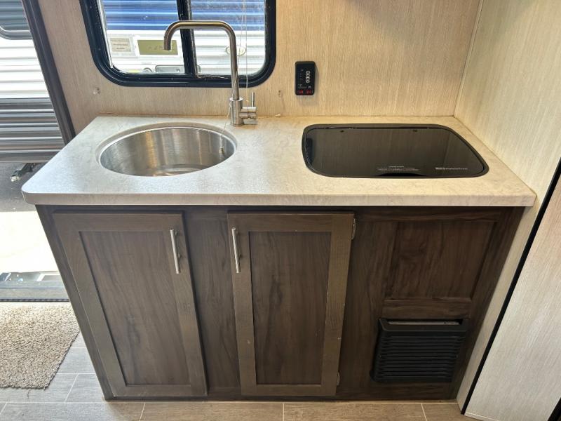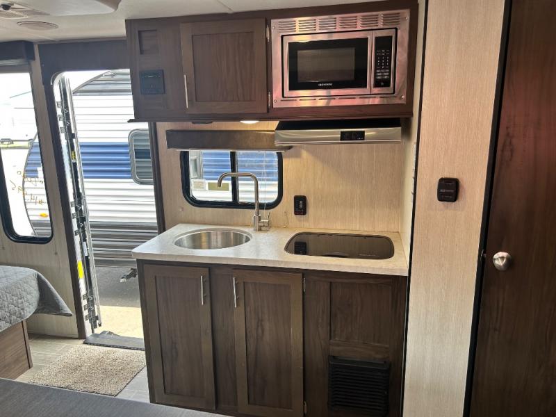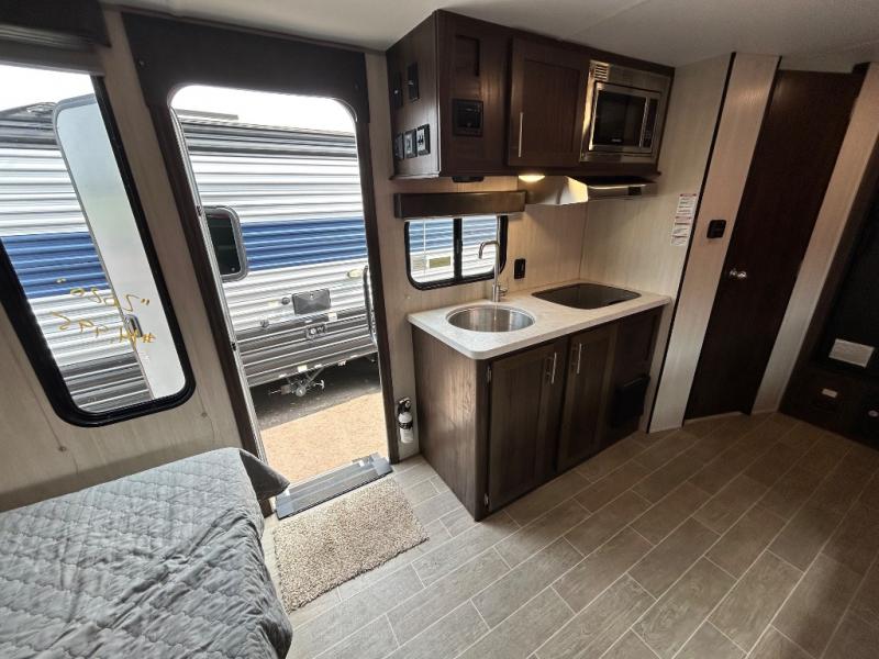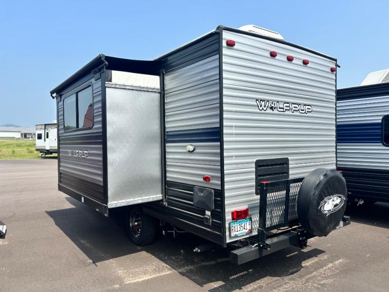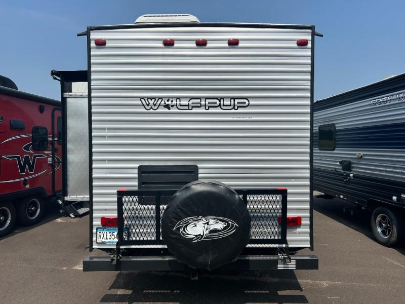 The Cherokee Wolf Pup travel trailer and toy hauler by Forest River are lightweight and easy to tow with ample storage for all your things. The aerodynamic radius front profile allows for better gas mileage, and the one-piece walkable decked roof allows you to easily clean off the unit after a fun weekend. You'll enjoy features such as USB charging stations to keep everyone's phones charged, a power awning with an LED light strip allowing you to stay outside longer, a seamless countertop, and an outside shower with hot and cold water to clean the dishes or even yourself, plus more! Pick the floorplan that works best for you, and start camping tomorrow!