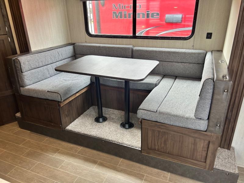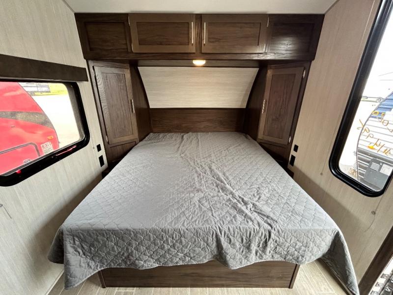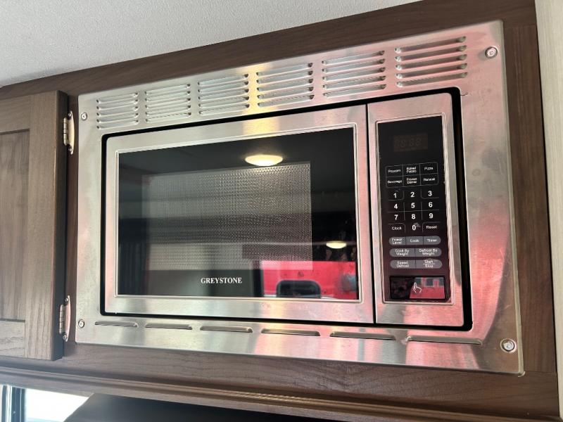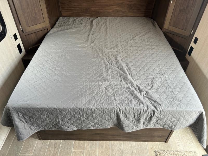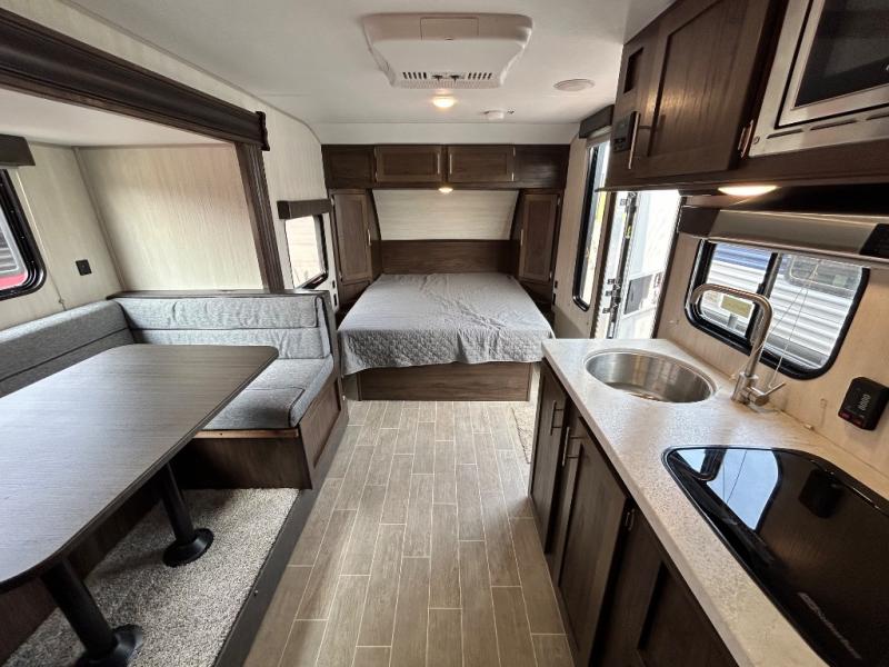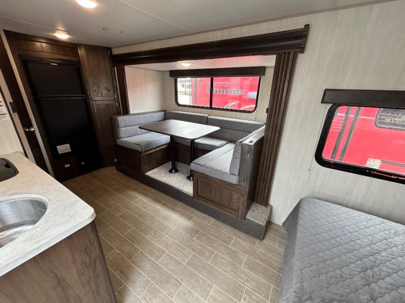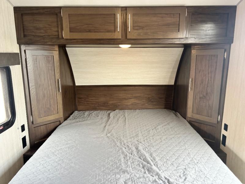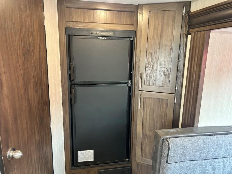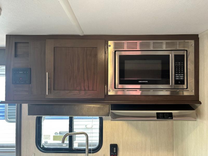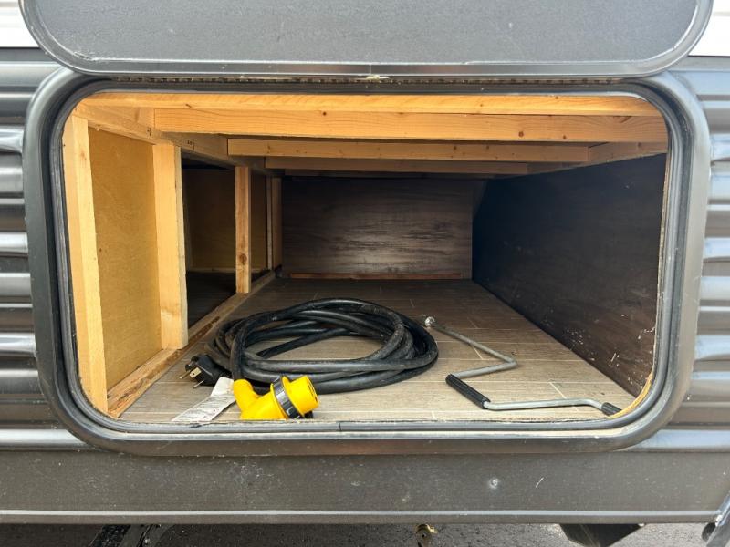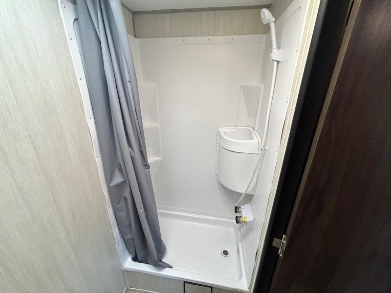 Leave nothing behind when you have plenty of storage inside as well as in the outside storage! You will also find lots of walking around space with the slide out U-shaped dinette fully extended to move from the Murphy bed/sofa to the rear corner toilet and tub/shower room. You will surely enjoy your privacy to change clothes or get cleaned up before starting your outdoor day. Be sure to grab a snack from the refrigerator or the pantry before beginning your hike. And when you return, grab your camp chairs from the outside storage to relax under the power awning providing you an outdoor living space.
