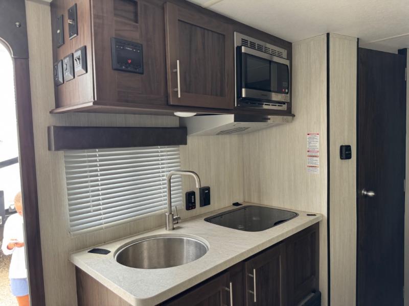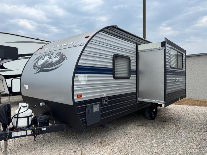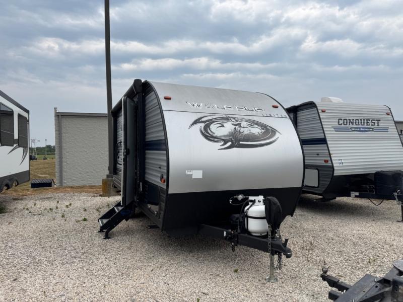 The Cherokee Wolf Pup travel trailer and toy hauler by Forest River are lightweight and easy to tow with ample storage for all your things. The aerodynamic radius front profile allows for better gas mileage, and the one-piece walkable decked roof allows you to easily clean off the unit after a fun weekend. You'll enjoy features such as USB charging stations to keep everyone's phones charged, a power awning with an LED light strip allowing you to stay outside longer, a seamless countertop, and an outside shower with hot and cold water to clean the dishes or even yourself, plus more! Pick the floorplan that works best for you, and start camping tomorrow!