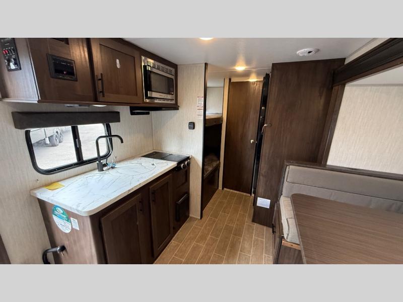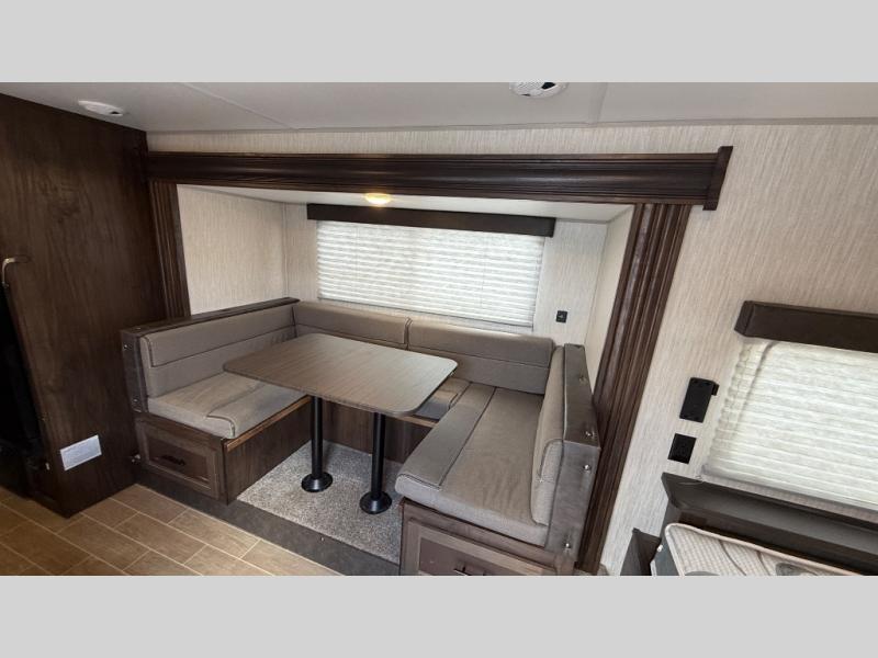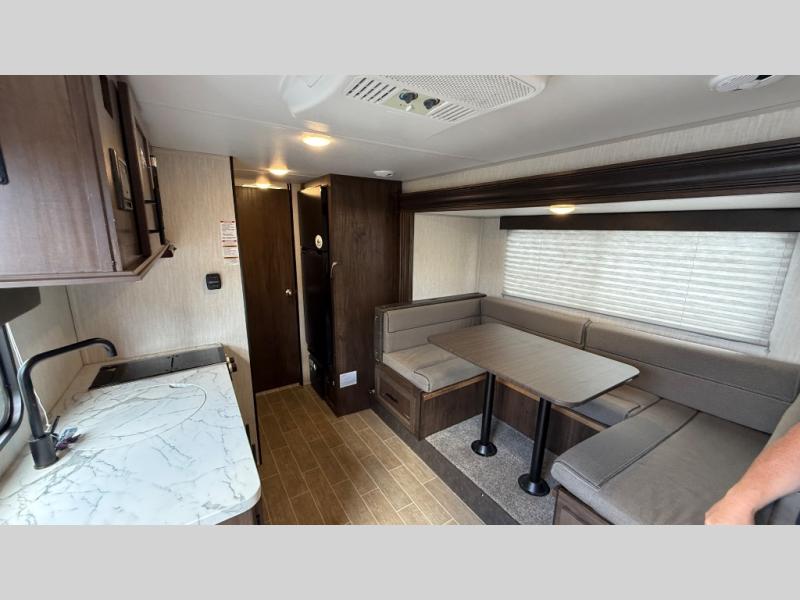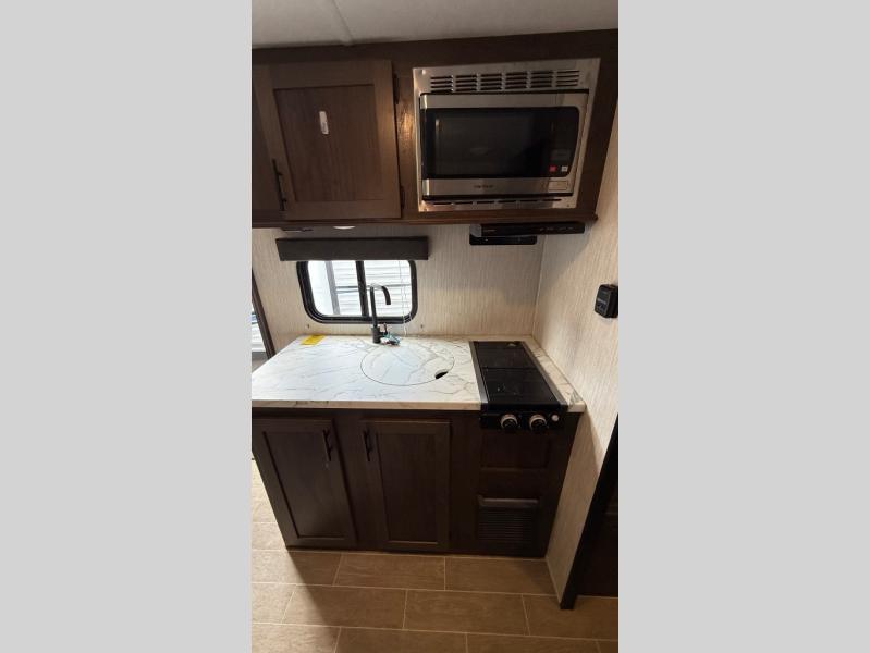 Get ready for some comfortable accommodations after you play outdoors with your RV friends at your favorite state park campsite. You can sit and talk under the power awning all night thanks to the LED light strip, or you can play games at the U-shaped dinette slide out. The dinette also doubles as extra sleeping space if your kids' friends want to stay the night. And everyone can enjoy some privacy when getting ready in the toilet and shower room. The chef will love having a cooktop and microwave to make meals and snacks, as well as a sink and counter space to clean up everything afterwards.